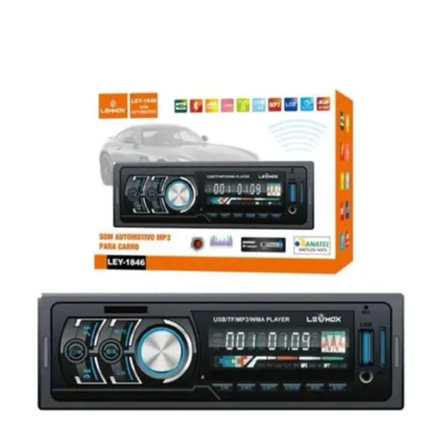 O rádio automotivo Bluetooth Ley-1846 da Lehmax é um dispositivo bastante popular para quem busca modernizar o som do carro. Ele possui conectividade Bluetooth, permitindo que você faça chamadas e escute música sem precisar de cabos, o que é uma ótima opção para mais praticidade e segurança ao dirigir. Principais características: Conectividade Bluetooth: Permite emparelhar com smartphones e outros dispositivos, facilitando o streaming de áudio e chamadas hands-free. Compatibilidade com USB e SD: Você pode reproduzir suas músicas diretamente de pen drives ou cartões de memória, ampliando suas opções de entretenimento. Rádio AM/FM: Inclui a sintonização de estações de rádio, com boas opções de pré-seleção. Entrada Auxiliar: Para quem prefere usar cabos, a entrada auxiliar permite conectar dispositivos de áudio diretamente. Qualidade de Som: Geralmente, os rádios da Lehmax oferecem boa qualidade sonora, com equalizadores para ajustar os tons ao seu gosto. Design Moderno: O visual é geralmente clean e funcional, com botões de fácil acesso.