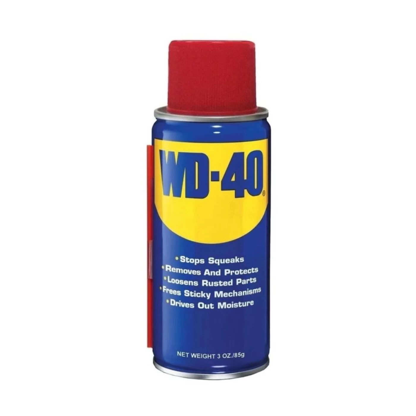 WD-40 Produto Multiusos Aerossol 100 ml é a embalagem mais prática de levar para todos os lugares. Cabe na caixa de pesca, no bolso, no porta luvas do carro Possui válvula 180º exclusiva que permite o uso com a lata virada para baixo. Pode ser encontrado em lojas de náutica, pesca e produtos automotivos. Borrife diretamente as peças e superfícies para lubrificar, proteger, limpar, eliminar umidade e penetrar. Lubrificante e anticorrosivo multiuso Derivados de petróleo.