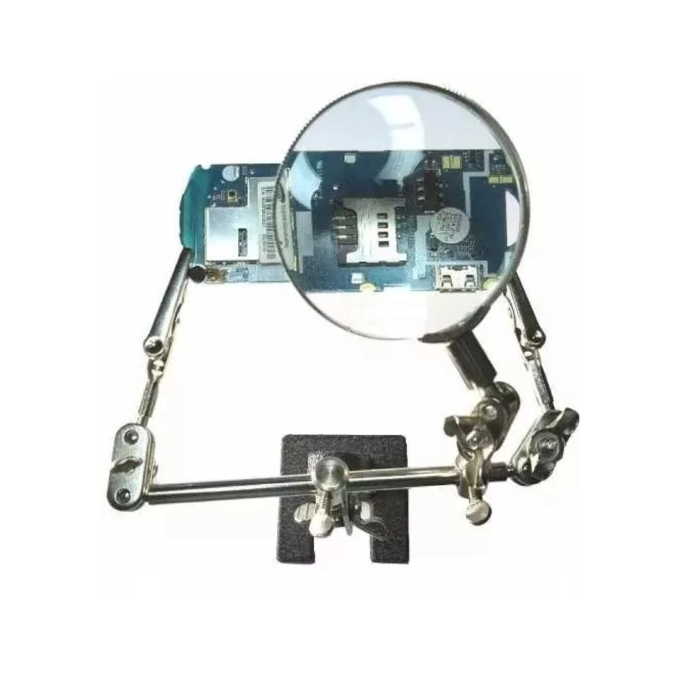 Projetada para trabalhos que exigem precisão, a lupa de bancada articulada da Kokay é a escolha certa para você que precisa de uma ferramenta versátil, possui duas garras articuladas estilo jacaré que irá lhe auxiliar em reparos de placas, circuitos pequenos entre outros componentes, a lupa possui ampliação ideal que facilitará na visualização dos terminais dos componentes seja em encapsulamento PTH ou SMD.