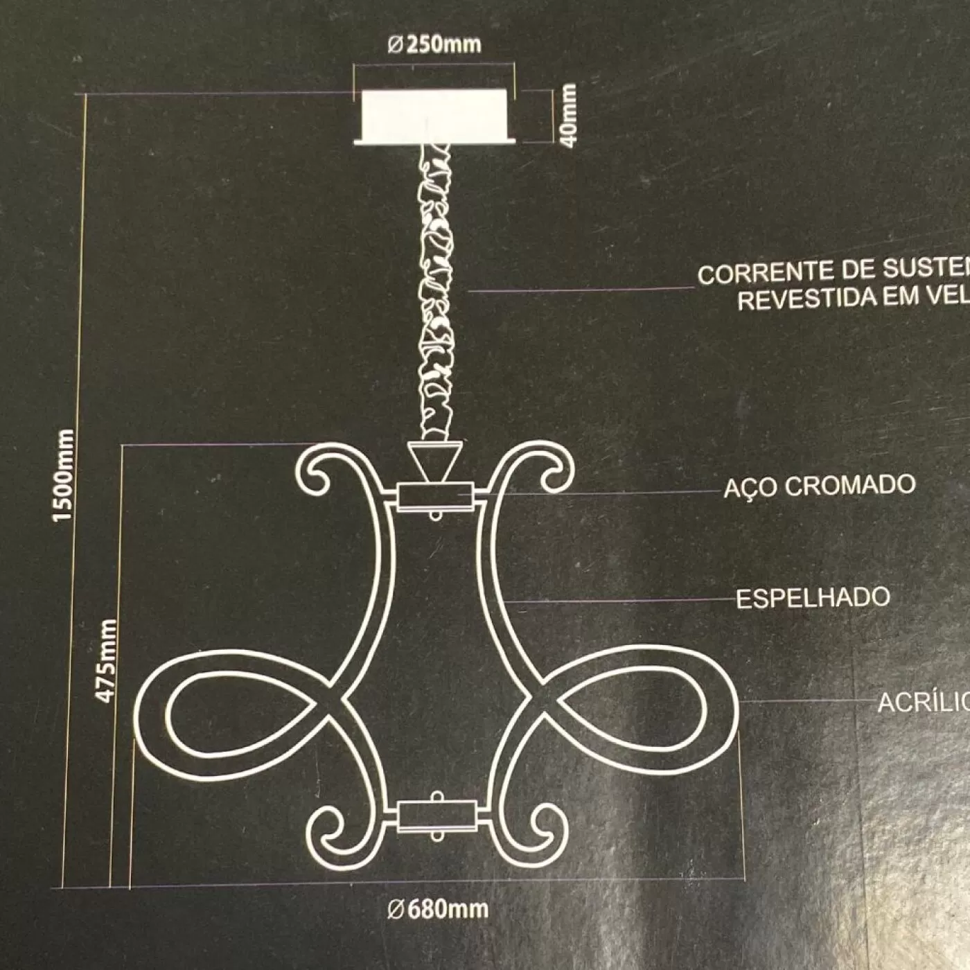 Aço cromado, difusor em acrílico fosco e material espelhado