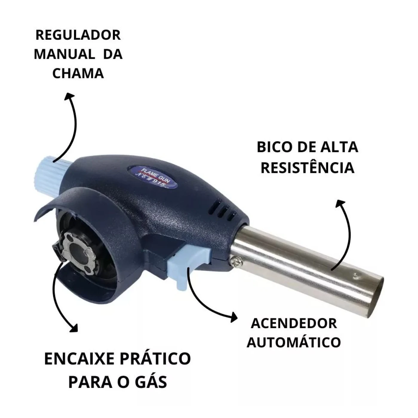 Multifuncionalidade: Perfeito para caramelizar alimentos, soldar, descongelar, acender churrasqueiras e realizar reparos diversos.