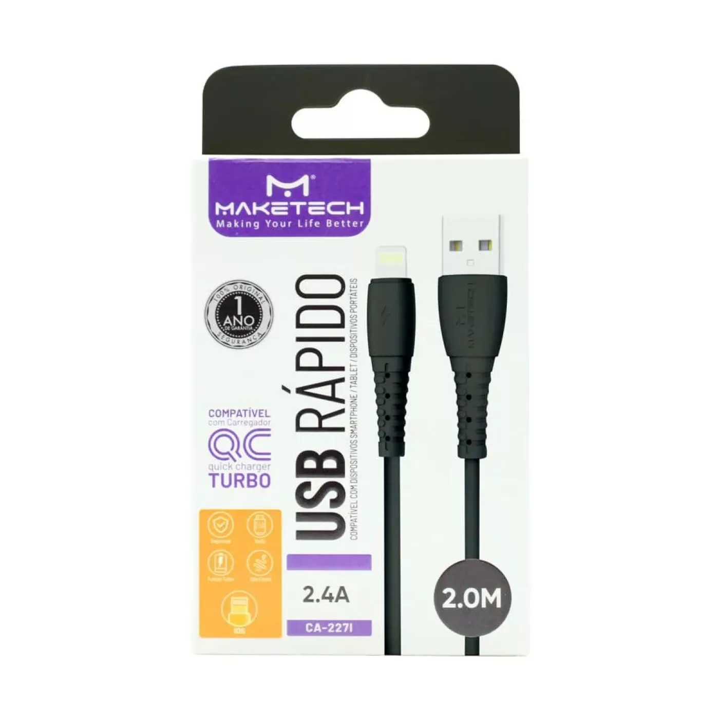 O cabo USB Lightning 2M preto CA-227I da MakeTech é muito mais do que apenas um simples cabo de carregamento. Com sua qualidade de construção premium e funcionalidade confiável, ele se torna uma peça essencial para qualquer pessoa que dependa de seus dispositivos móveis diariamente.