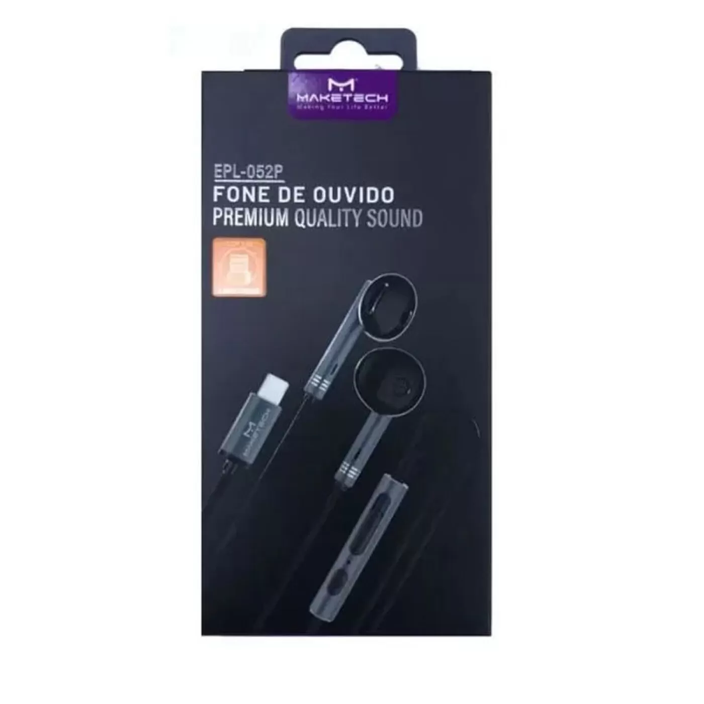 FONE DE OUVIDO COM FIO EPL052P LIGHTNING PRETO - MAKETECH