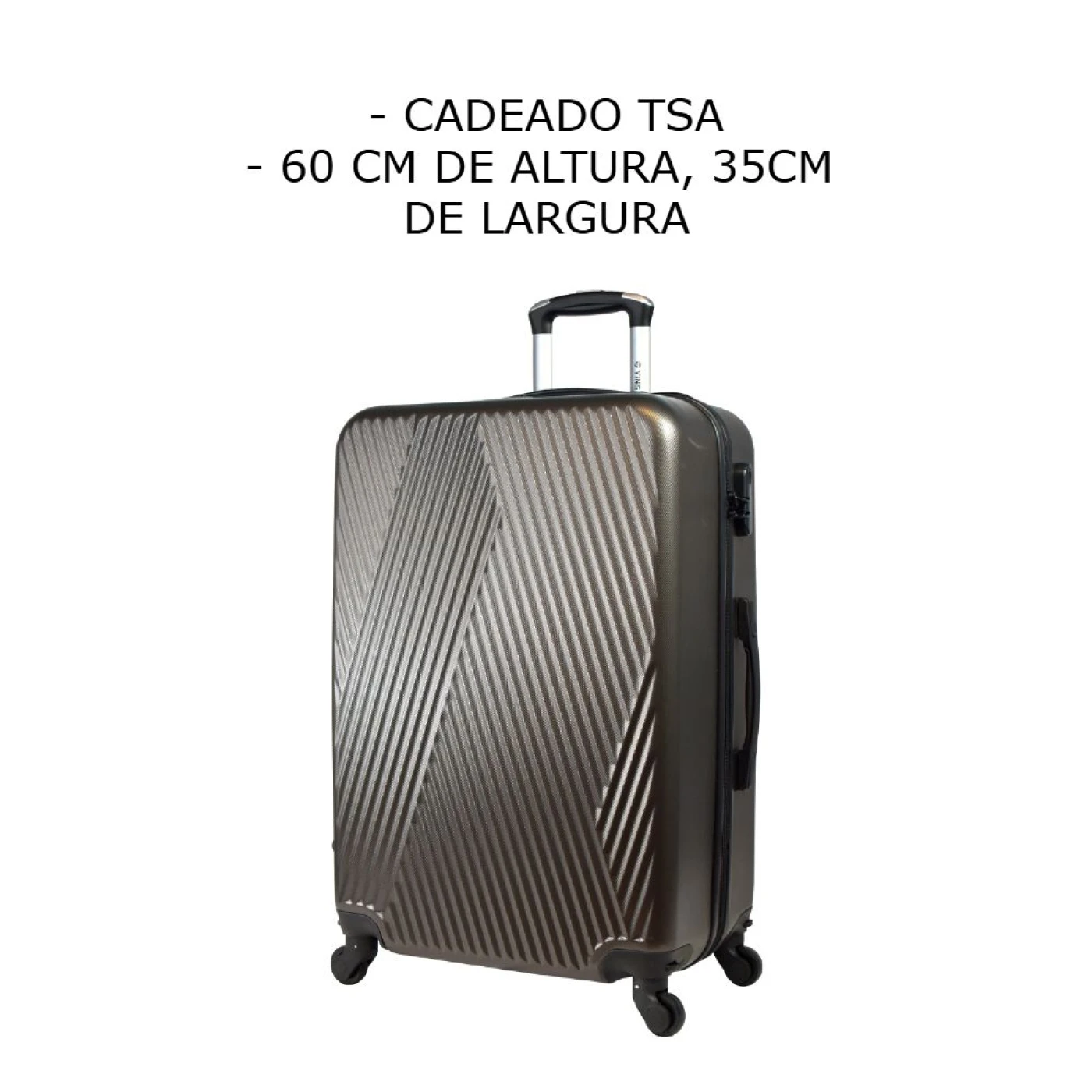 Rodas Giratórias 360º: Movimentação prática e suave em qualquer direção, garantindo conforto durante o transporte.
