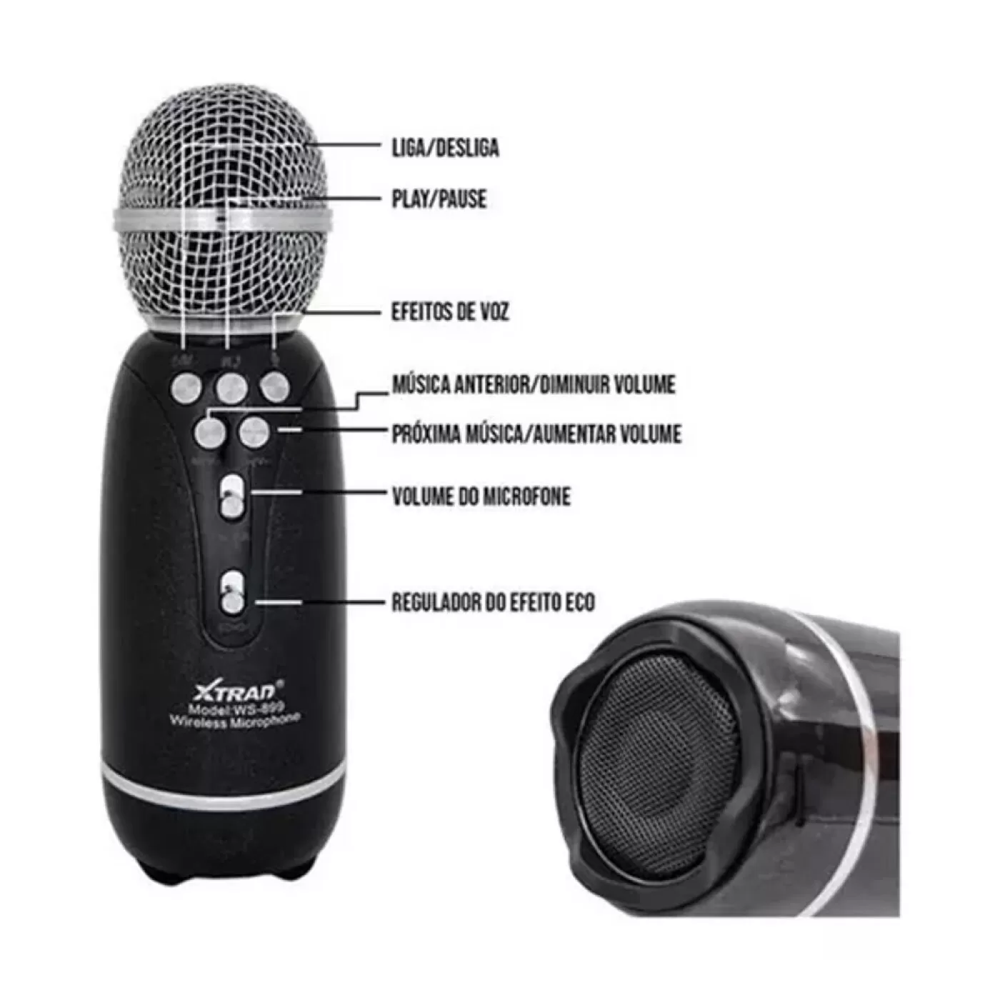 - Microfone Karaokê com conexão Bluetooth.