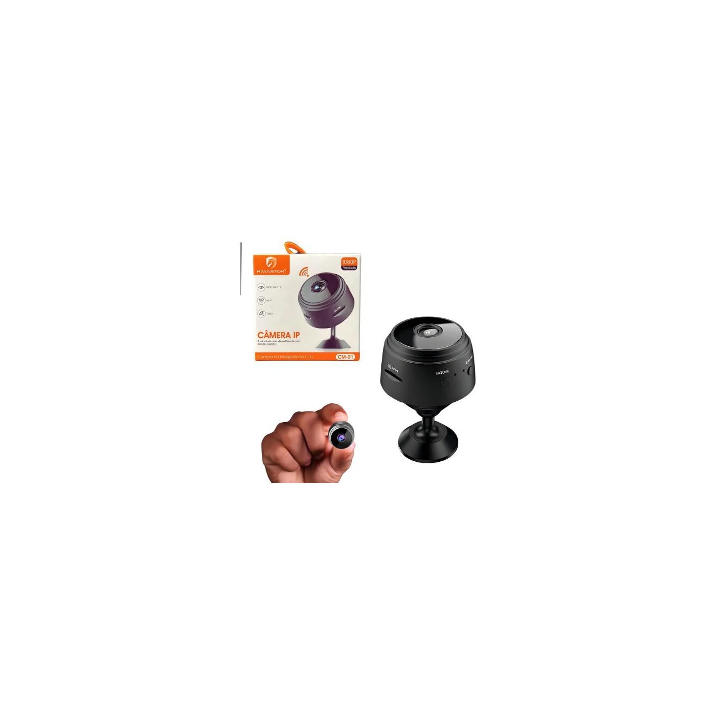 Câmera compacta, portátil e sem fio, ideal para monitoramento residencial ou comercial, com conexão Wi-Fi e bateria recarregável de longa duração. Modelo CM-01 da marca H'maston.Permite visualização remota via aplicativo, gravação em HD e detecção de movimento.