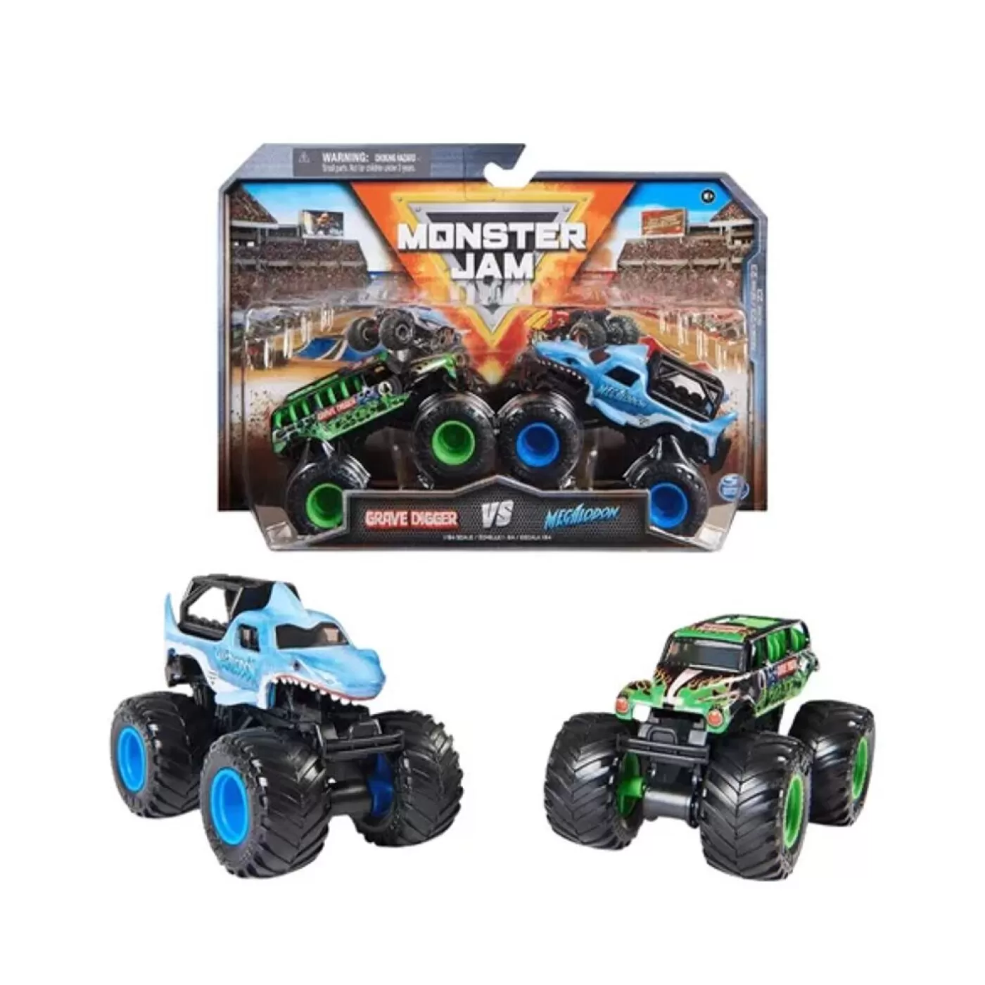 Colecione e faça o seu próprio evento Monster Jam com seus amigos! Ambos os caminhões incluídos no 2-Pack incluem um motorista moldado no banco do motorista!