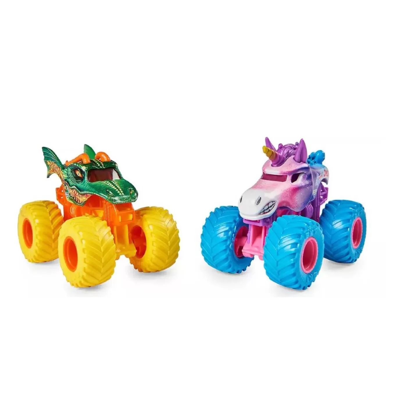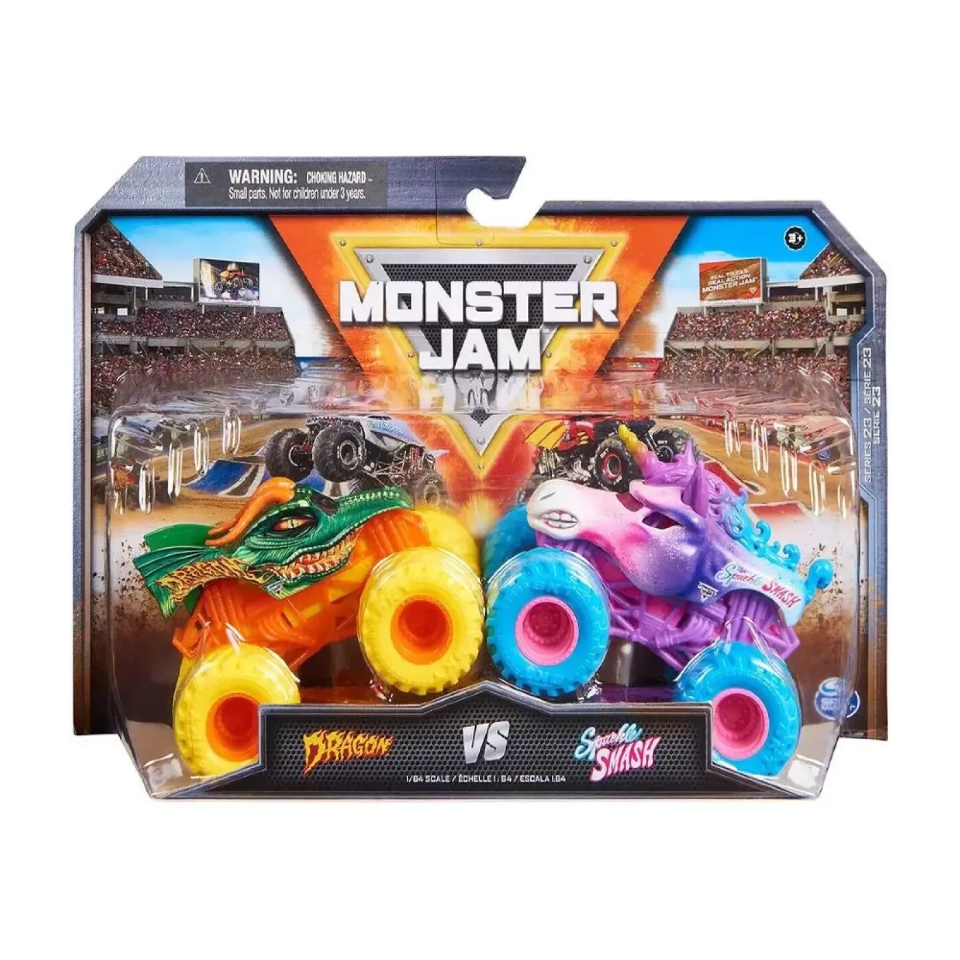 Colecione e faça o seu próprio evento Monster Jam com seus amigos! Ambos os caminhões incluídos no 2-Pack incluem um motorista moldado no banco do motorista!