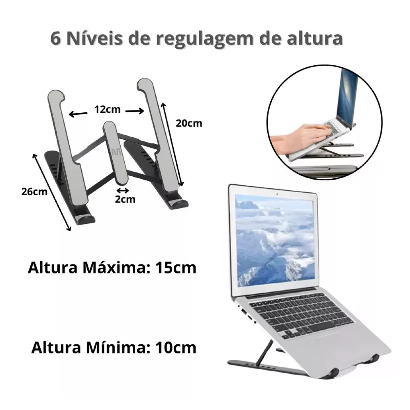 Características Base Notebook Multi Lift AC439 Alumínio Preto