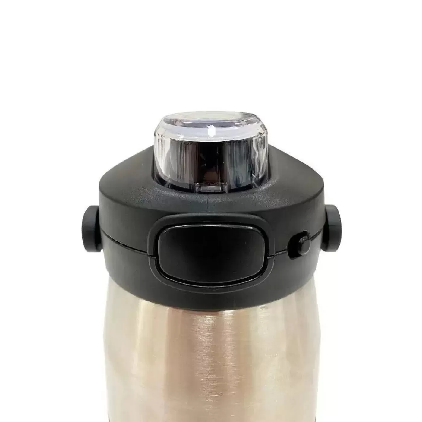 Seu design conta com um bico que pode ser aberto apenas desbloqueado e apertando um botão para abrir a tampa , desta forma sendo uma peça que mantém o líquido bem conservado , evitando risco de vazamentos pela tampa. Conta também com uma pequena alça para carregar a garrafa sem segurança diretamente no corpo dela.