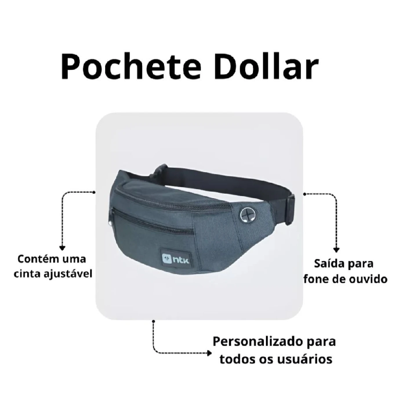 Uso: Ideal para viagens, caminhadas ou uso urbano diário, a Pochete Dollar NTK mantém seus itens essenciais à mão. Segura e versátil, ela promete ser uma companheira indispensável no seu dia a dia.