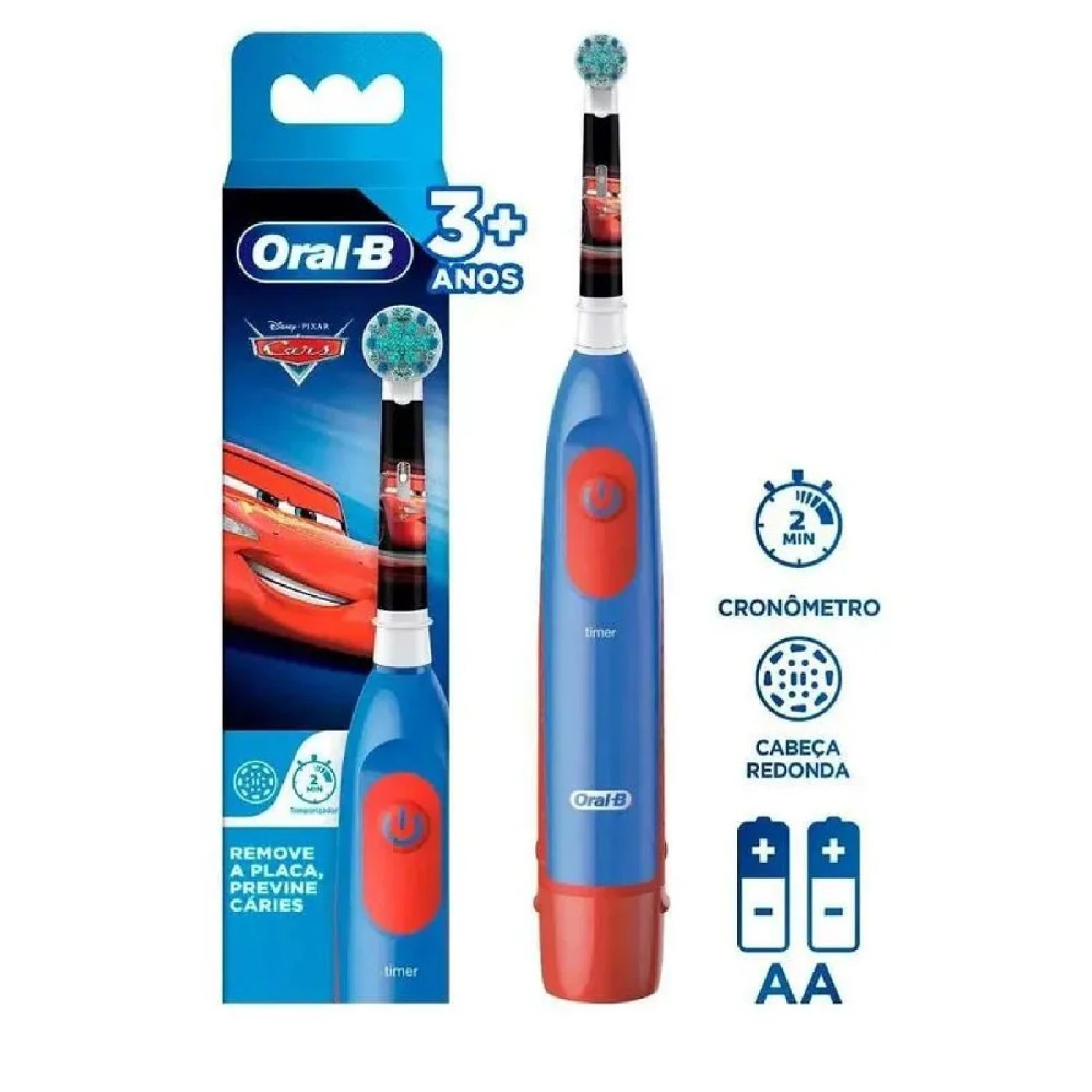 Escova Dental Oral-B Cars Disney Pixar + 2 Pilhas AA A Escova de Dentes Elétrica Oral-B Kids Pixar Cars para crianças maiores de 3 anos combina a diversão dos Carros com a limpeza suave e eficaz de uma escova de dentes Oral-B. Especialmente projetada para crianças, esta escova limpa os dentes suavemente e remove mais placa bacteriana do que uma escova manual normal, protegendo a saúde do seu filho.