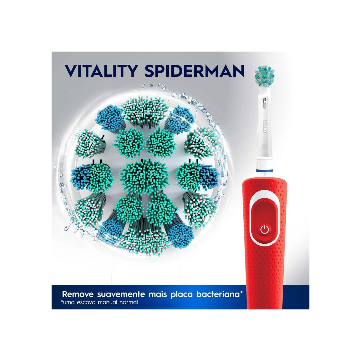 A Escova Elétrica Recarregável Kids Spiderman Oral-B foi desenvolvida especialmente para incentivar a escovação infantil, unindo praticidade, tecnologia e o universo do herói favorito das crianças. Com cerdas macias, promove uma limpeza eficiente e delicada, ajudando a remover a placa bacteriana de forma mais eficaz que uma escova manual comum. O design exclusivo do personagem Homem-Aranha torna o momento da escovação mais divertido e motivador para os pequenos.