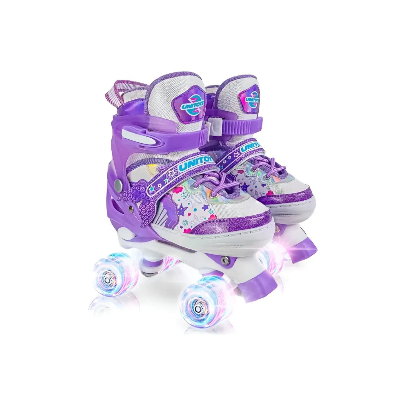 Patins quadrado modelo Sereia da marca Unito, ideal para crianças de 34 a 37. Estrutura resistente em PVC, rodas em poliuretano com rolamento ABEC-5, sistema de fechamento com cadarço e fivela ajustável, garantindo estabilidade e segurança. Design lilás divertido com temática de sereia, perfeito para lazer e aprendizado do equilíbrio. Produto novo, leve e confortável, recomendado para uso recreativo em superfícies planas.