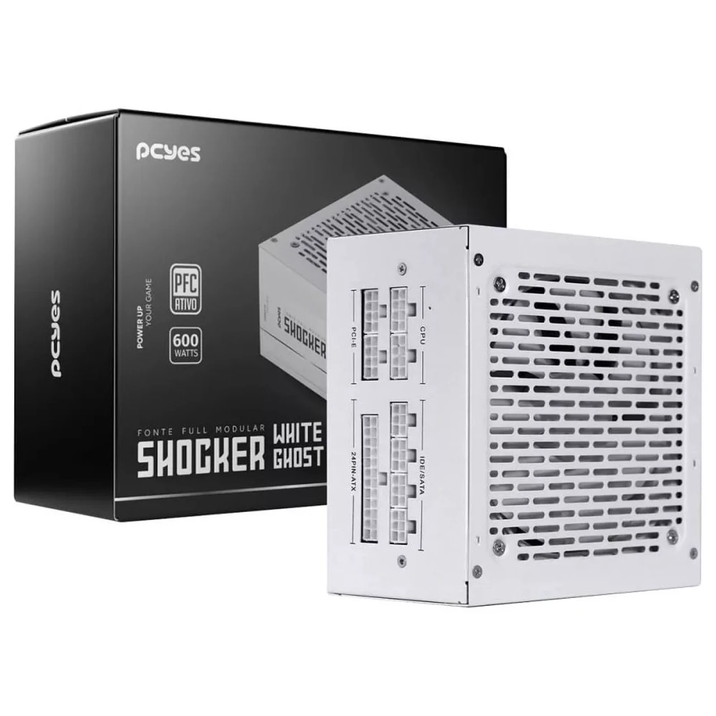 Fonte Gamer Shocker PcYes 600W Full Modular 80 Plus White PFC Ativo - White Ghost