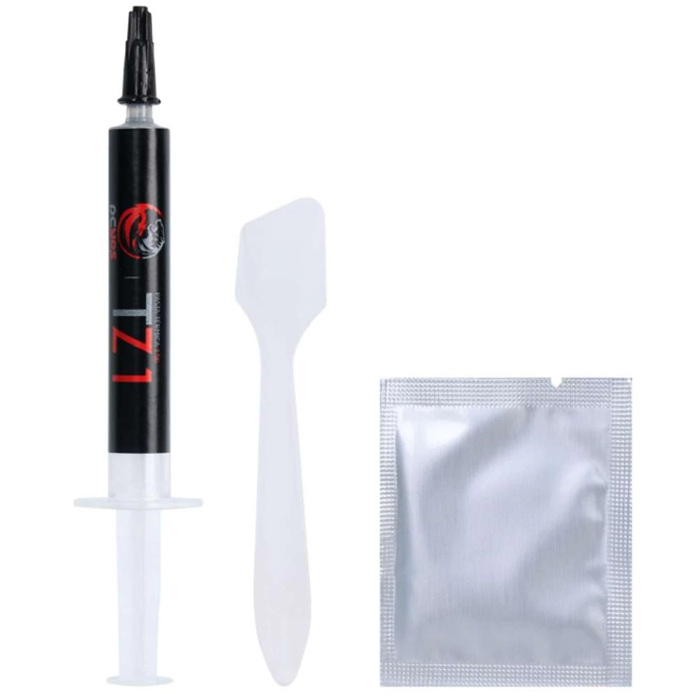 A pasta térmica TZ1 foi desenvolvido com alta viscosidade de 73 Pas, sendo ideal para superfícies irregulares ou quando a pressão de contato é baixa, tem sua aplicação que previne o alastramento em componentes não recomendados, então se espalha pouco. Com sua condutividade térmica de 5,15 W/MK que fortalece a condução de calor.