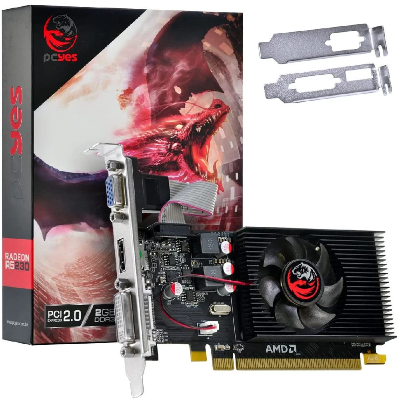 A Radeon R5 230 2GB, da pcyes proporciona a solução perfeita para os usuários que buscam um desempenho de gpu separada, melhorando o desempenho ao executar tarefas do dia-a-dia, como funções multimídia, áreas de trabalho estendidas e aplicativos acelerados, além do consumo ultrabaixo de energia. - Assista filmes em FullHD, utilize monitores auxiliares e divirta-se com muitos jogos que está incrível placa pode rodar. - Dissipador de calor A pcyes Radeon R5 230 possui um dissipador de calor com fan junto ao gpu, favorecendo o desempenho das tarefas do dia a dia, evitando o aquecimento e prevalecendo a qualidade e velocidade. - Low Profile A pcyes Radeon R5 230, por ser uma placa compacta, possui Low Profile com 2 espelhos: dvi-i + hdmi / vga. Tornando-a compatível com qualquer tipo de gabinete. - Desempenho Corporativo A pcyes Radeon R5 230 é uma placa de vídeo ideal para melhorar o desempenho de computadores corporativos que vão além das atividades básicas do dia a dia.