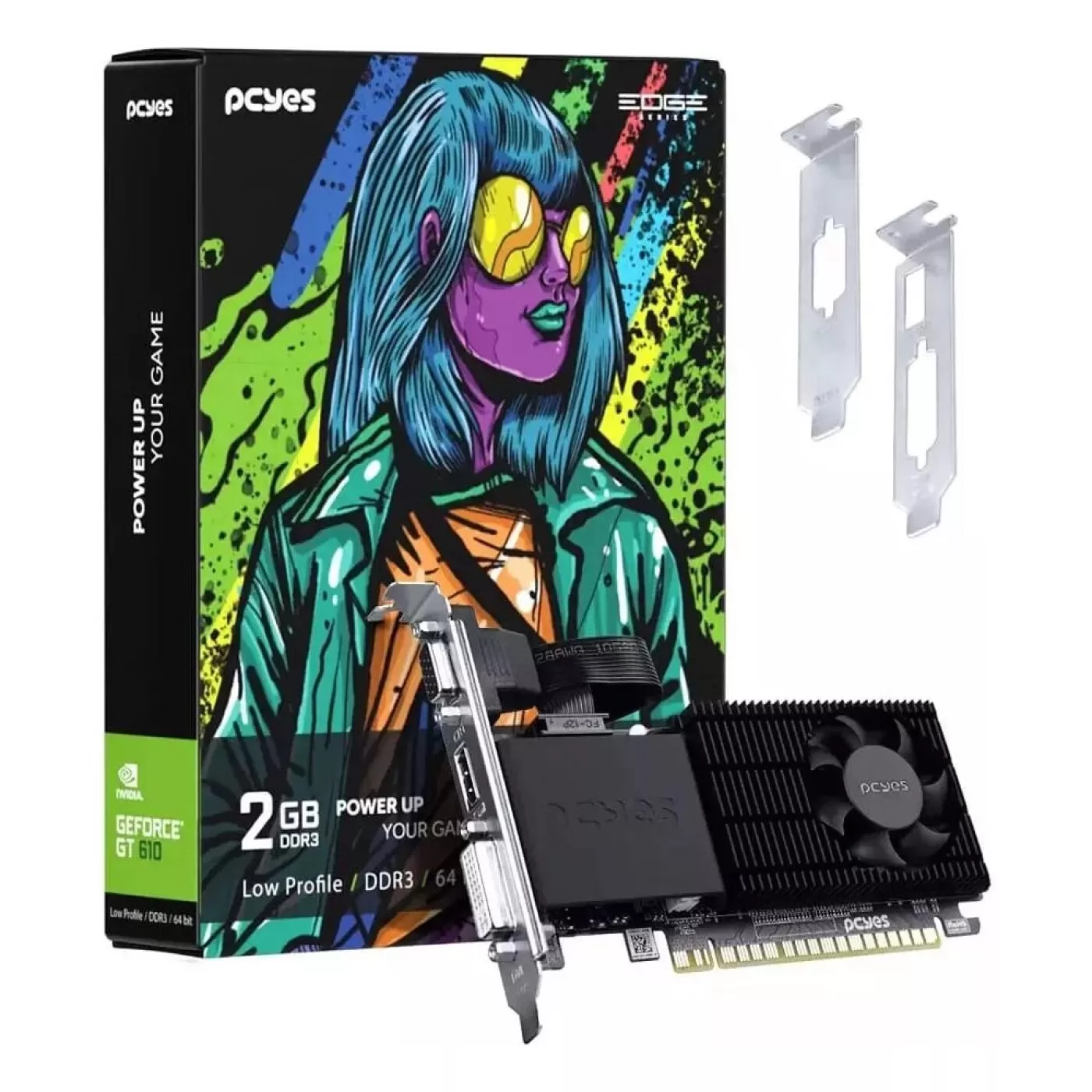 Aprimore sua experiência visual e desempenho gráfico com a excepcional Placa de Vídeo PcYes GT 610. Projetada para atender às demandas dos entusiastas de jogos e dos profissionais criativos, esta placa oferece um desempenho excepcional com sua configuração de ponta. Com um chipset GT610 e um core speed de 810 MHz, a GeForce GT 610 garante uma operação suave e rápida, permitindo que você desfrute de jogos intensos e aplicações gráficas exigentes sem falhas ou atrasos. Equipada com uma memória de 2 GB DDR3 e um clock de memória de 1000 MHz, esta placa oferece um amplo espaço e velocidade para lidar com as cargas de trabalho mais desafiadoras.