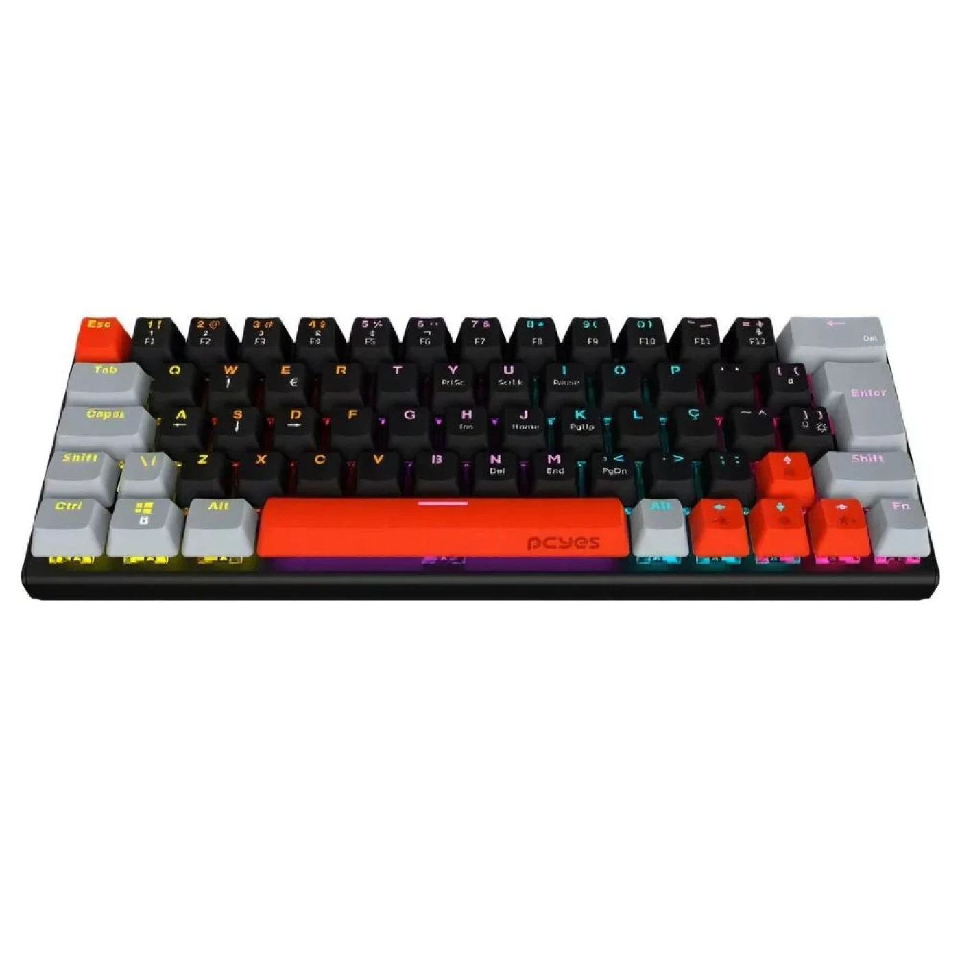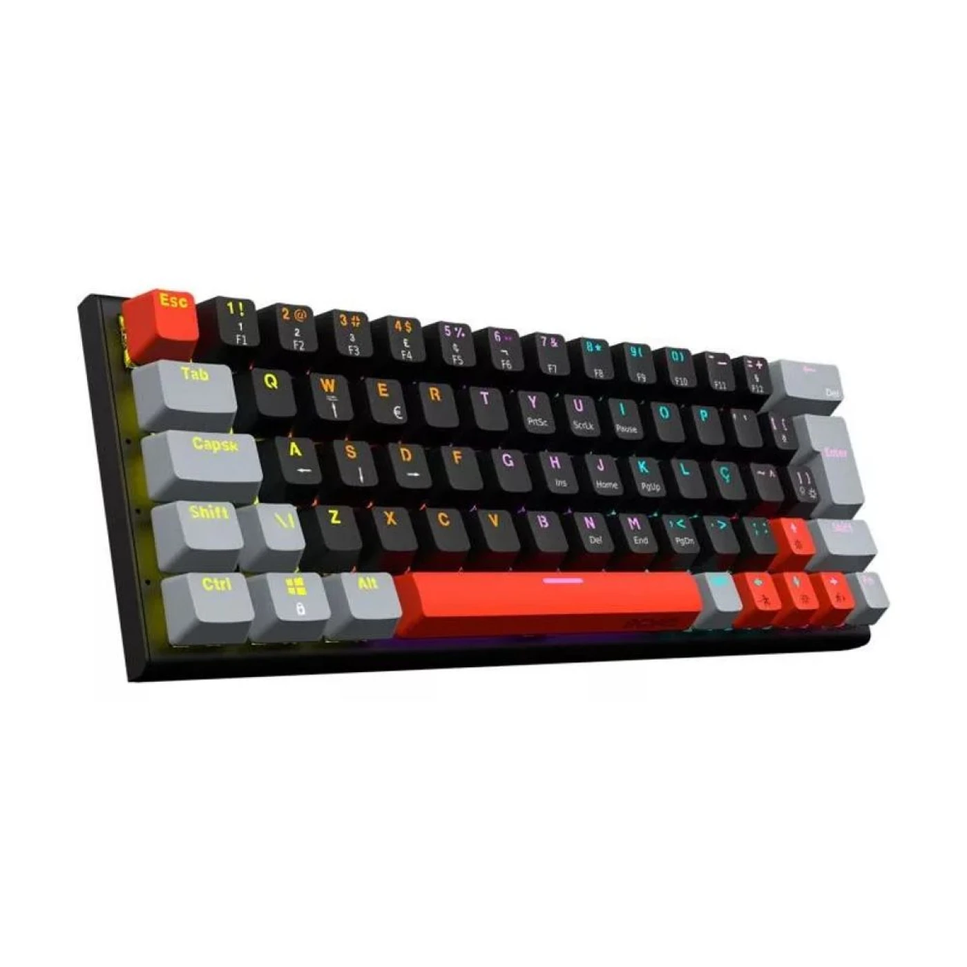 Keycaps tri-color confeccionadas pelo método double shot injection e iluminação rainbow, oferecendo um visual atraente e eficiência para o setup.