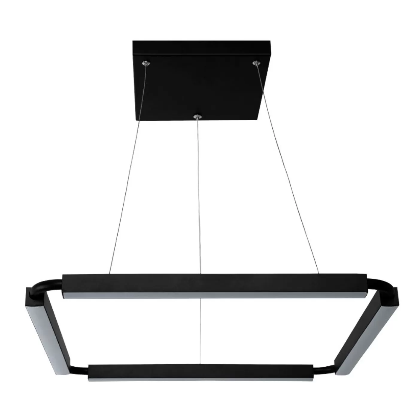 Um produto nacional de LED Integrado com aplicação flex que pode ser utilizado como pendente ou plafon. Possui alimentação elétrica por cabo coaxial, o que traz maior leveza ao produto, além cantos arredondados que trazem uma proposta futurista.