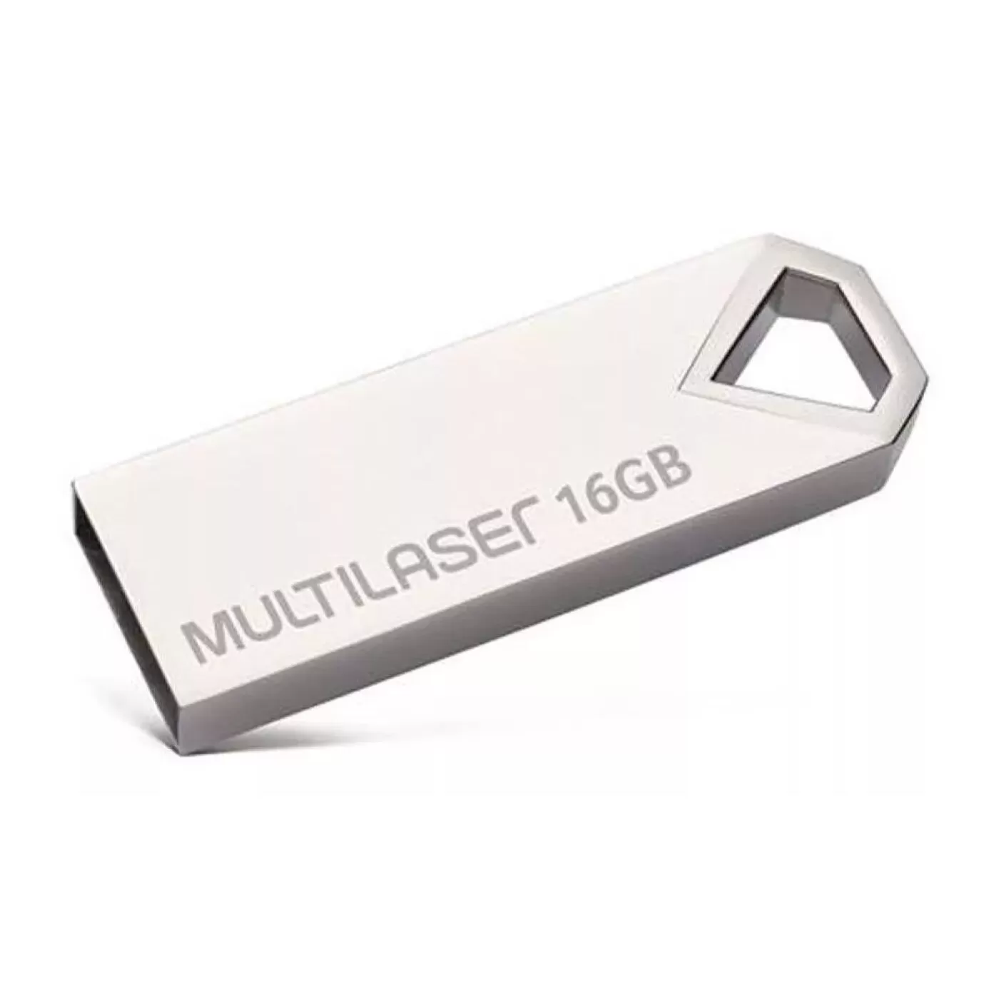 PENDRIVE MULTILASER DIAMOND 16GB USB 2.0 LEITURA 10MB/S E GRAVAÇÃO 3MB/S METÁLICO - PD850