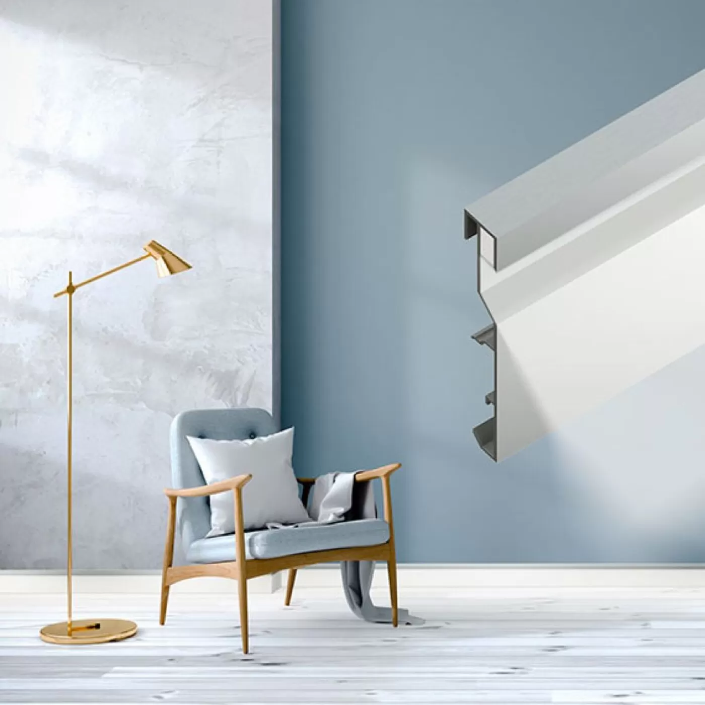 Além disso, o perfil sobrepor rodapé possui um design discreto e elegante, com acabamento na cor preta, o que o torna uma opção versátil e esteticamente agradável para diversos estilos de decoração. O seu formato permite uma instalação fácil e rápida, podendo ser fixado diretamente no rodapé, sem ocupar espaço adicional no ambiente.
