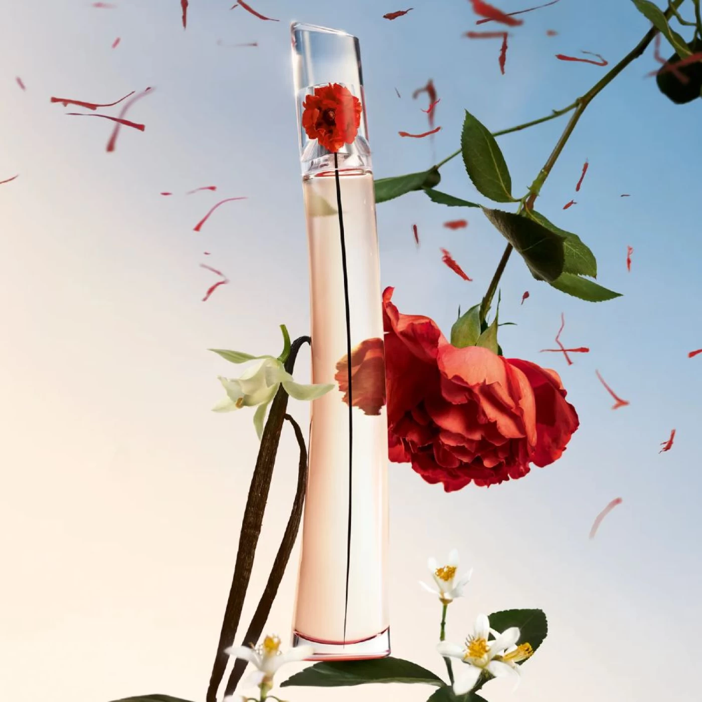 O Perfume Flower By Kenzo L’Absolue, de Kenzo, traz a personalidade da ativista poética que, assim como a flor, extrai sua força da natureza. Ao longo do frasco, em um vermelho intenso, uma papoula erguida pelo vento, como uma longa pincelada, presta homenagem às origens japonesas da marca.