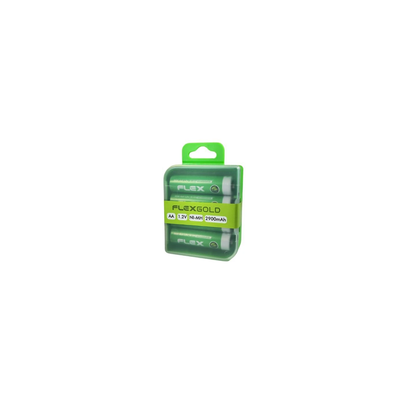 Pilha recarregável AA da marca Flexgold, modelo FX-RAA4, com capacidade de 2900 mAh, ideal para dispositivos de baixo e médio consumo como controles remotos, brinquedos e lanternas. Permite múltiplos ciclos de recarga, oferecendo maior durabilidade e economia.