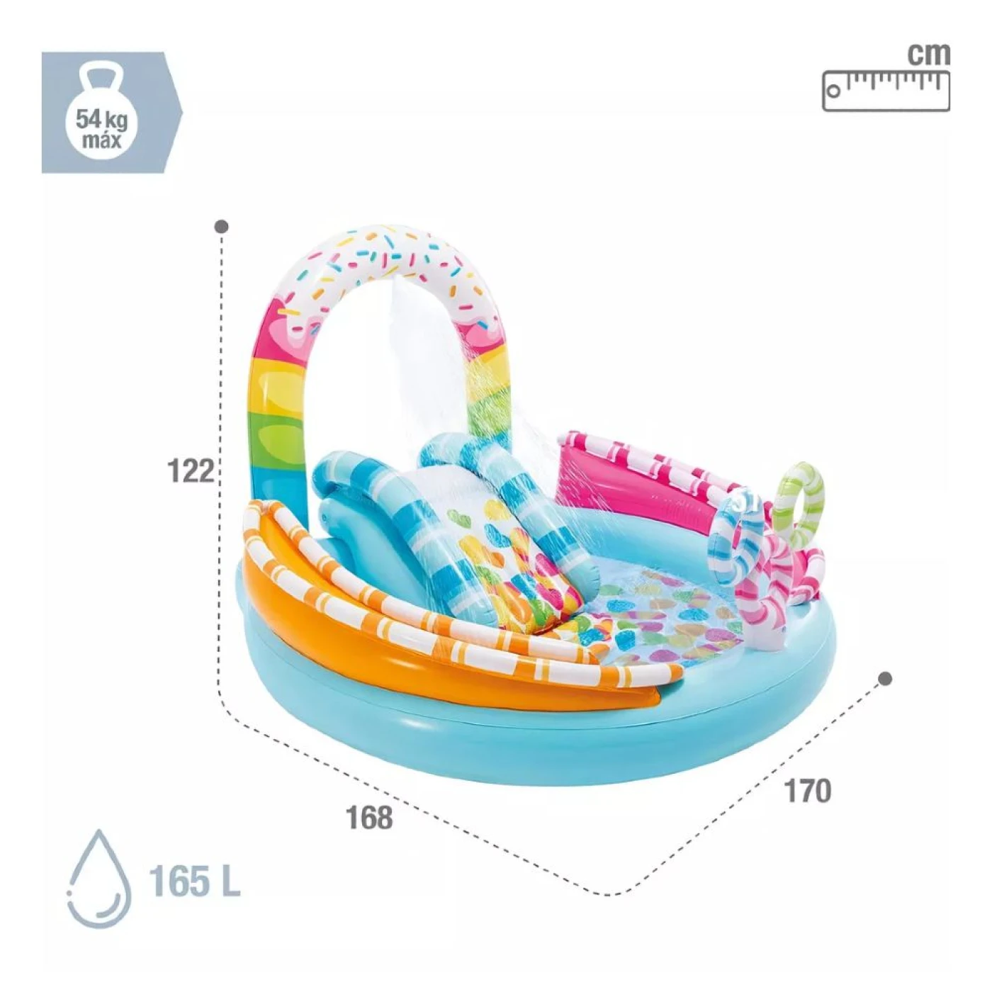 Piscina Inflável Infantil Doces Playground Candy Fun 165 L Com Escorregador Intex