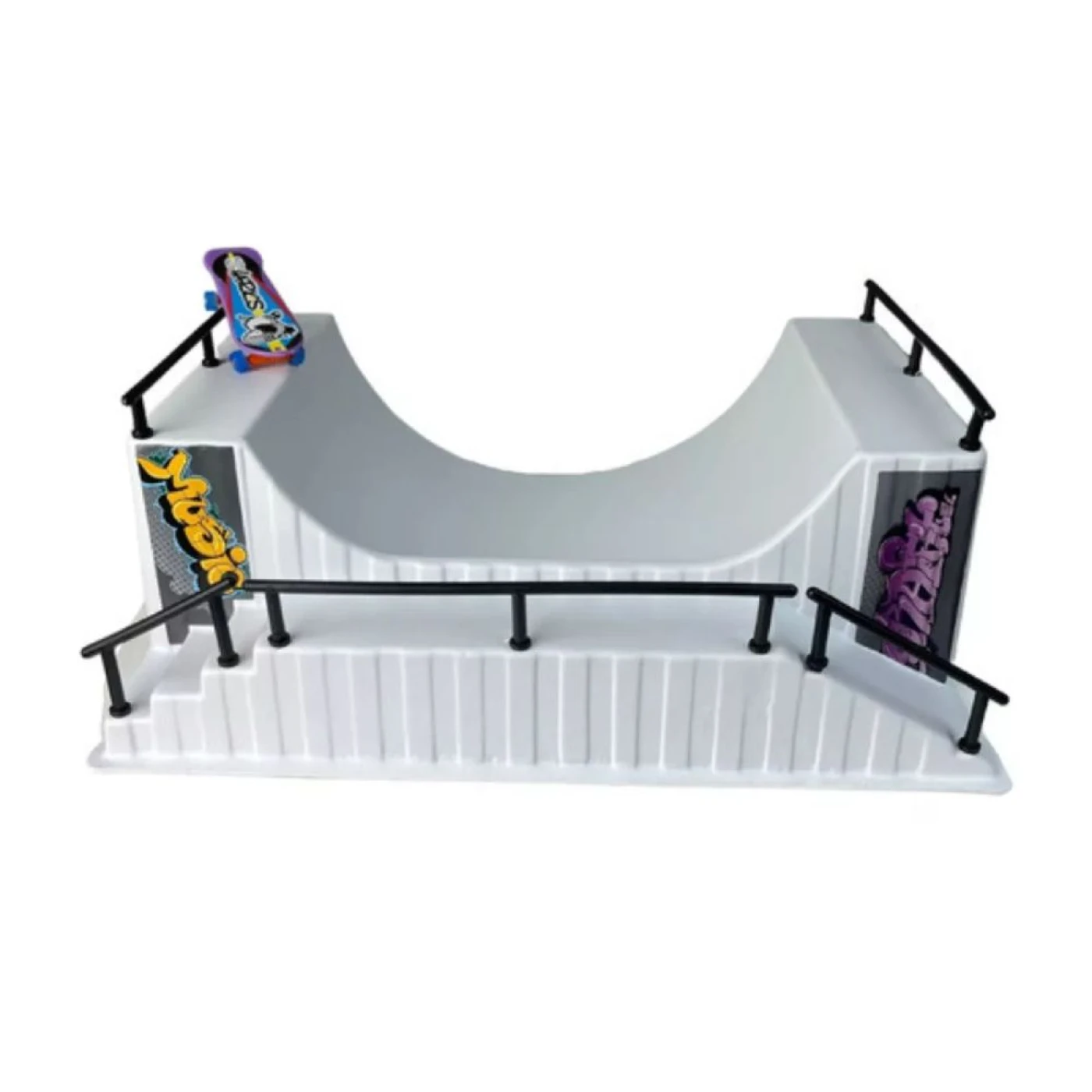 Este modelo de pista infantil foi projetado para proporcionar uma experiência de jogo realista. A rampa half e o corrimão permitem que as crianças realizem manobras e truques, estimulando a coordenação motora e a imaginação. O finger board incluído no kit é perfeito para as pequenas mãos, facilitando o controle e a execução das manobras.