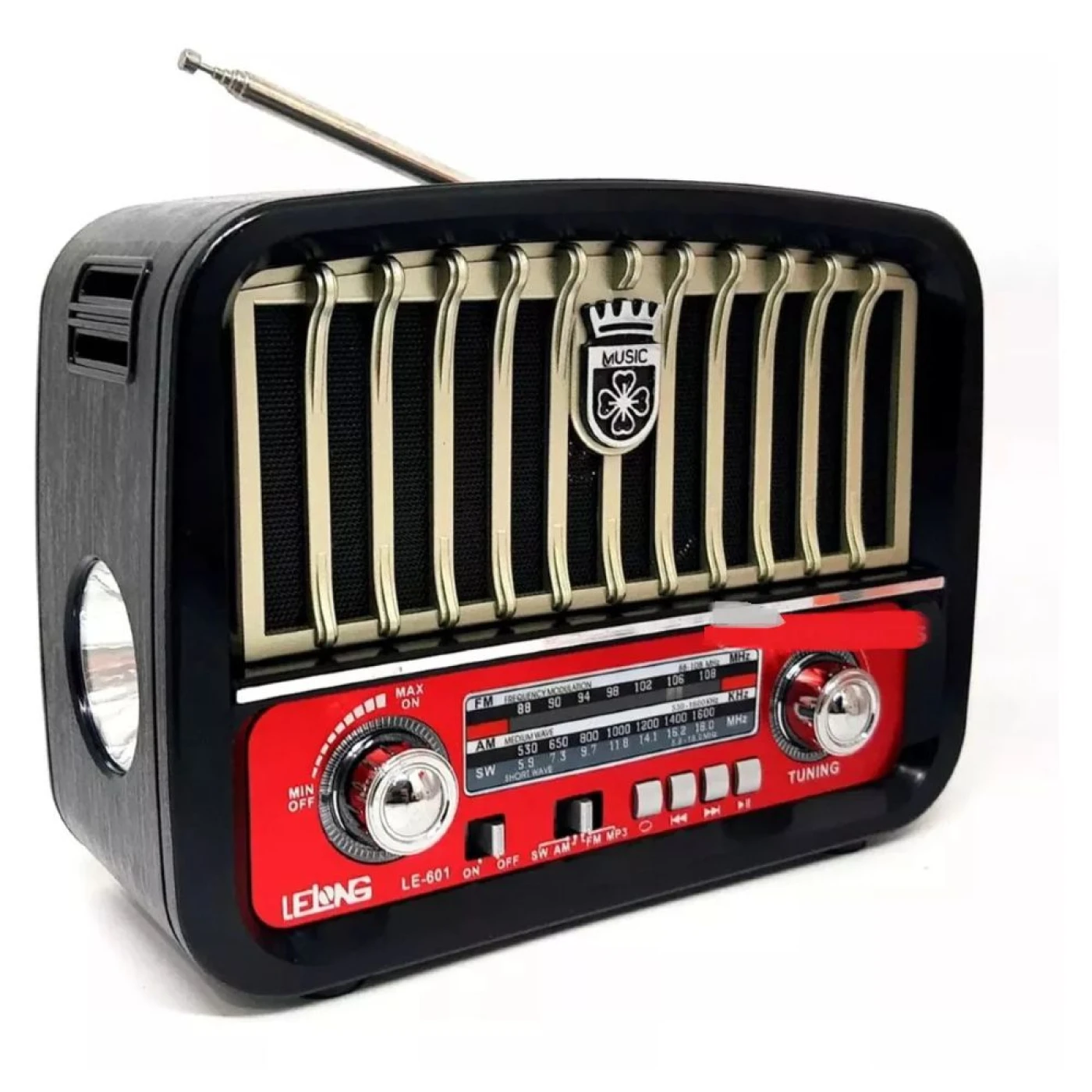 O Rádio Portátil Retrô LE-601 Lelong une o charme do design vintage à praticidade das tecnologias modernas, proporcionando uma experiência única para os amantes de música e estilo clássico. Com recursos como Bluetooth, entradas USB e SD, este rádio é perfeito para ouvir suas estações preferidas ou suas playlists favoritas.