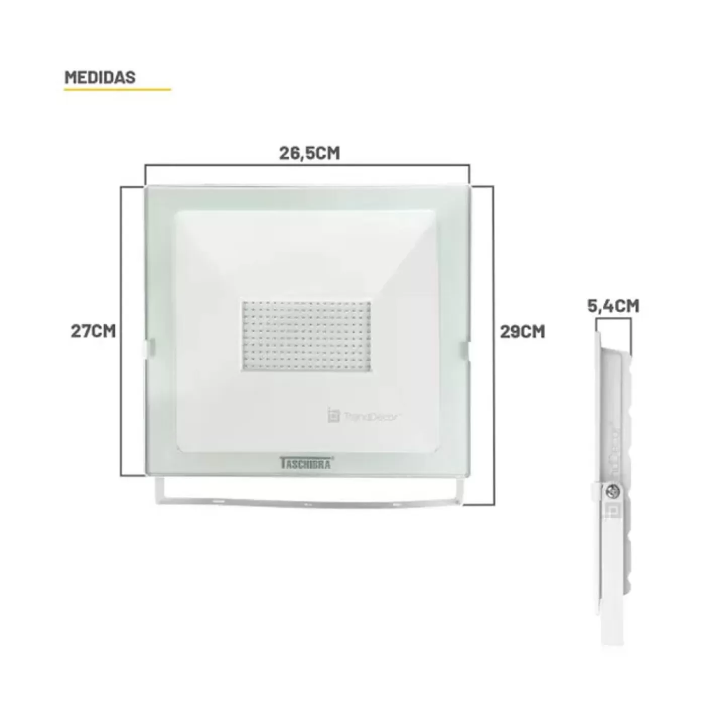 ideal para decorações externas: O Refletor tr LED Slim é um modelo versátil e refinado, possui um diferencial em seu tamanho tornando-o ideal para áreas externas, pontos comerciais, industriais, placas, outdoors e quadras esportivas.