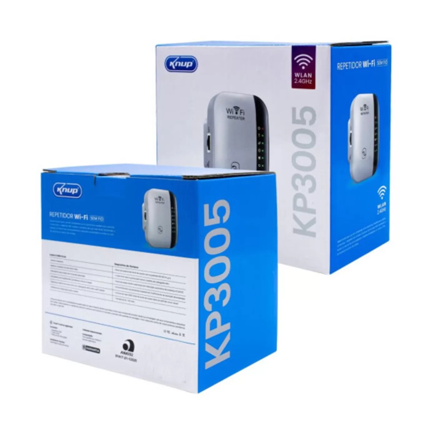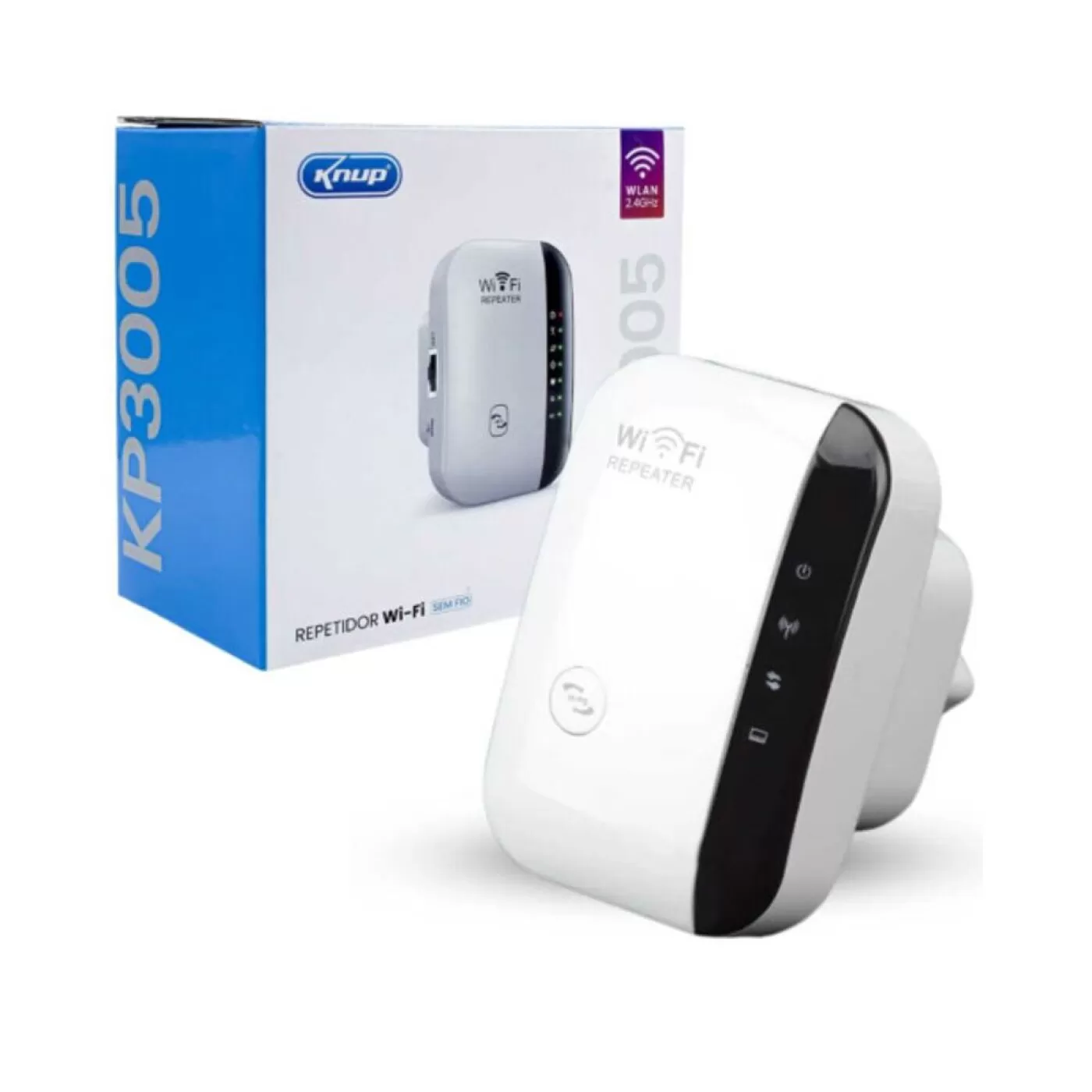 Repetidor Wifi sem fio wireless 300mbps KP-3005 KNUP De fácil instalação, vem com o passo a passo para configurar, conta também com entrada LAN e tem protocolos de segurança WPA, WPA2 e WEP. Características: • Melhora a cobertura do sinal wireless em todas as redes WLAN.(transmitindo o sinal em velocidade máxima e com segurança!) • WLAN 802,11n para acesso sem fio de alta velocidade. • Compatível com os padrões 802.11 G (54Mbps) e 802.11B (11 Mbps) • Compatível com rede WLAN 2.4ghZ • Referência: KP-3005 • Padrões Wireless: IEEE 802.11b/g/n • Segurança: WEP / WPA / WPA2 • 11n: até 300Mbps • 11g: até 54Mbps • 11b: até 11Mbps CONTEÚDO DA EMBALAGEM • 1 Repetidor Wi-Fi • 1