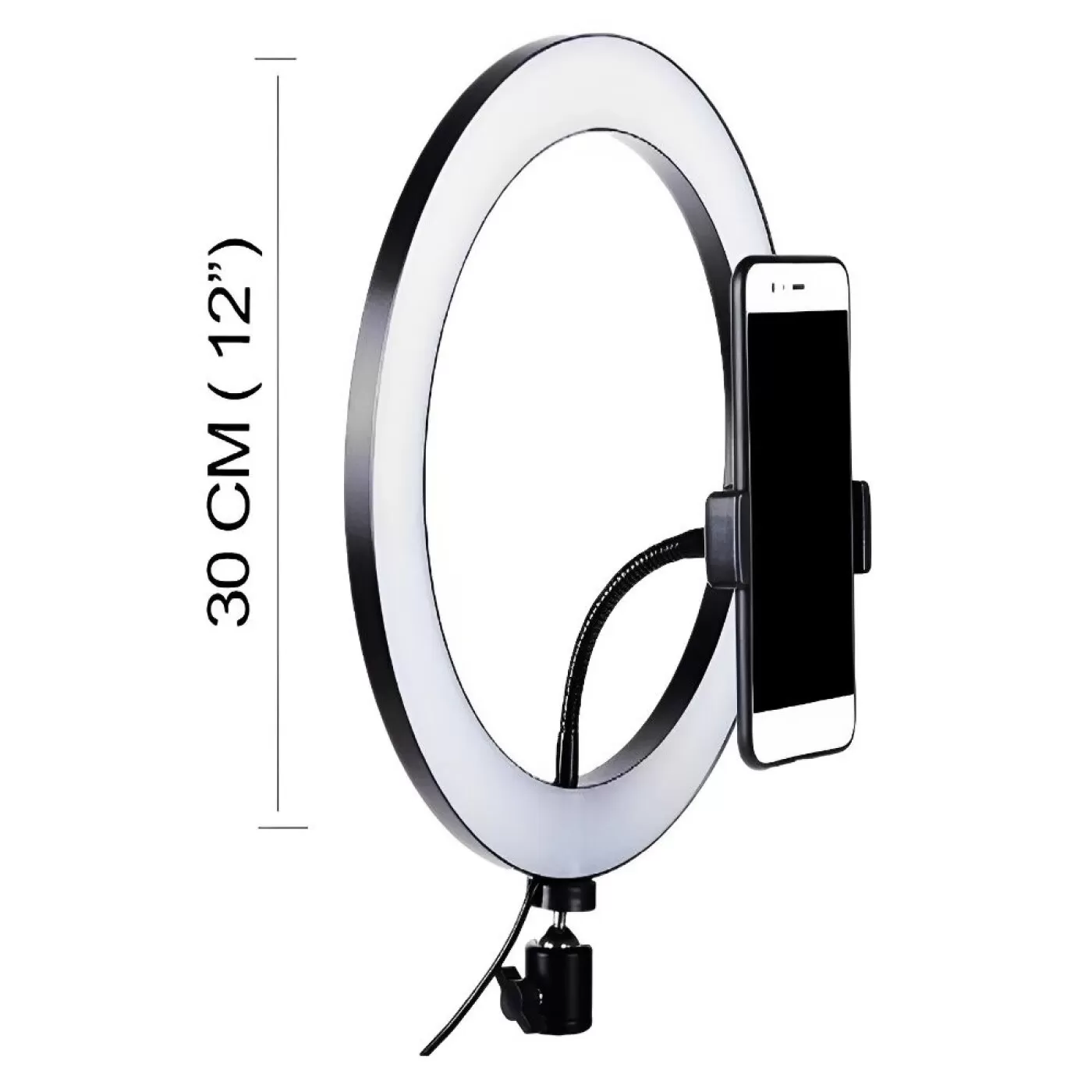 Iluminador de LED Ring Light - 12 polegadas (30cm), é indicado para profissionais no ramo da beleza, como maquiadores e cabeleireiros, ou para fotógrafos que buscam ampliar a iluminação de seus estúdios fotográficos, sendo muito utilizado para criação de fotos de produtos, devido a sua iluminação fiel às cores, Desenvolvido para maquiadores, fotógrafos, cinegrafistas, amadores e etc, que buscam uma ótima maneira de iluminar com perfeição.