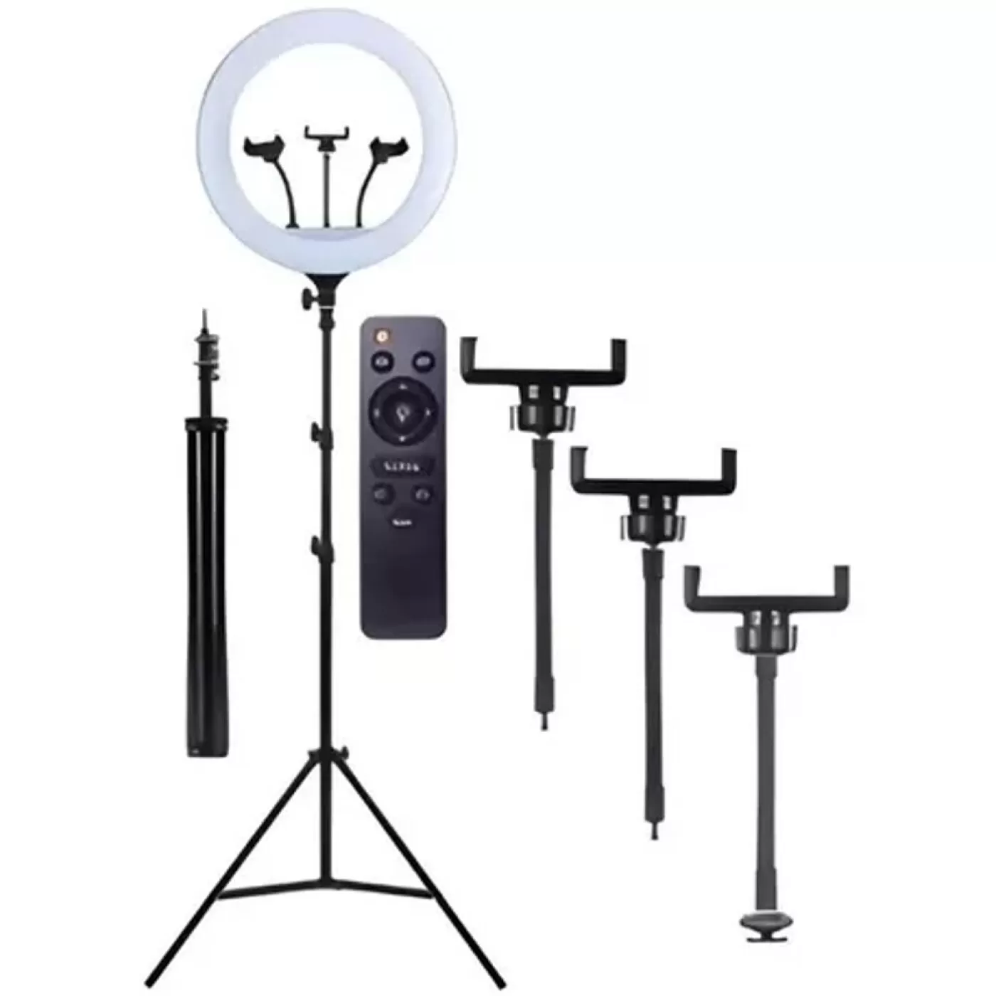 O tripé incluído no conjunto oferece estabilidade e ajustabilidade, permitindo que você posicione o Ring Light no ângulo desejado. Com altura ajustável, você pode utilizá-lo tanto no chão quanto em uma mesa, adaptando-se às suas necessidades específicas. O tripé também é fácil de montar e desmontar, tornando-o portátil e conveniente para uso em diferentes locais.