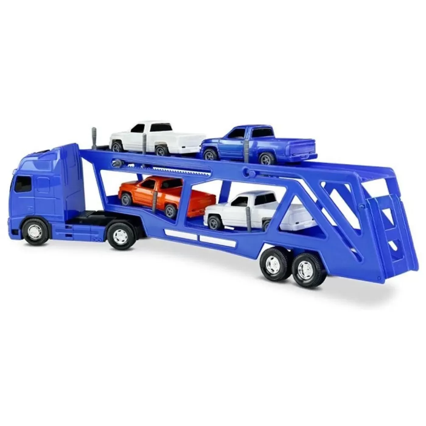 Entregue a carga da hora certa da diversão. Com este caminhão cegonha, a garotada vai conseguir transportar os quatro carrinhos que vem com ele no local que desejar. Com os de verdade, ele apresenta trava para os veículos, manivela para descer a rampa superior e inclinação da inferior, ajudando subir com o carrinho. Com ele, seu filho vai adorar ser o condutor desta super carreta. Atenção: Esse produto é sortido. Não será possível escolher o modelo, cor ou outro tipo de variação.