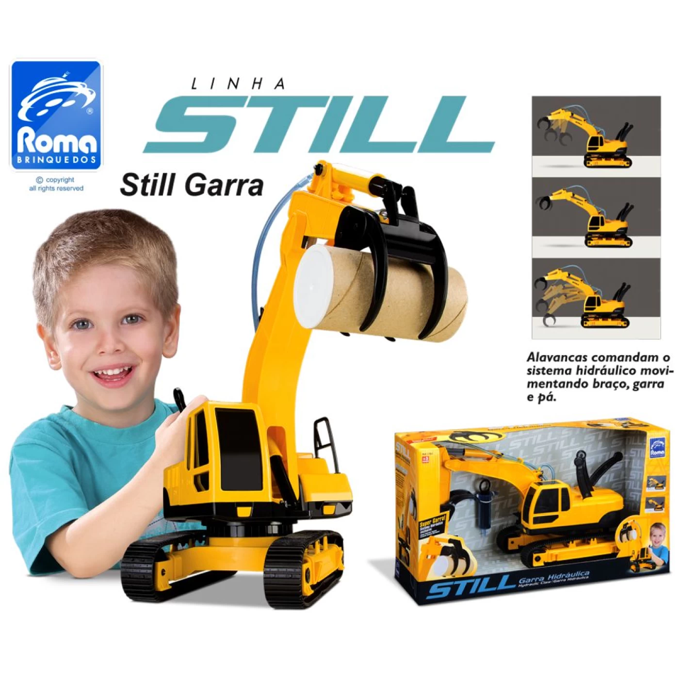 A diversão da garotada está garantida com o trator escavadeira de brinquedo da linha Still da Roma Jensen. A Escavadeira é perfeita para as crianças soltarem a imaginação e brincarem como se estivessem fazendo uma obra de verdade.