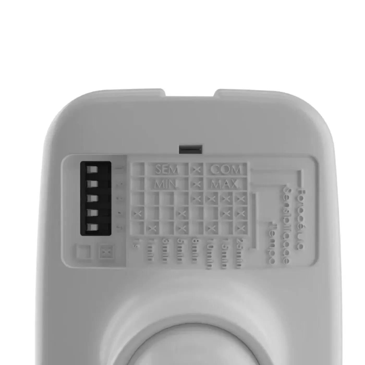 - REGULAGEM DE SENSIBILIDADE: Máxima, detectará a presença de movimentos leves e; Mínima, detectará movimentos bruscos.