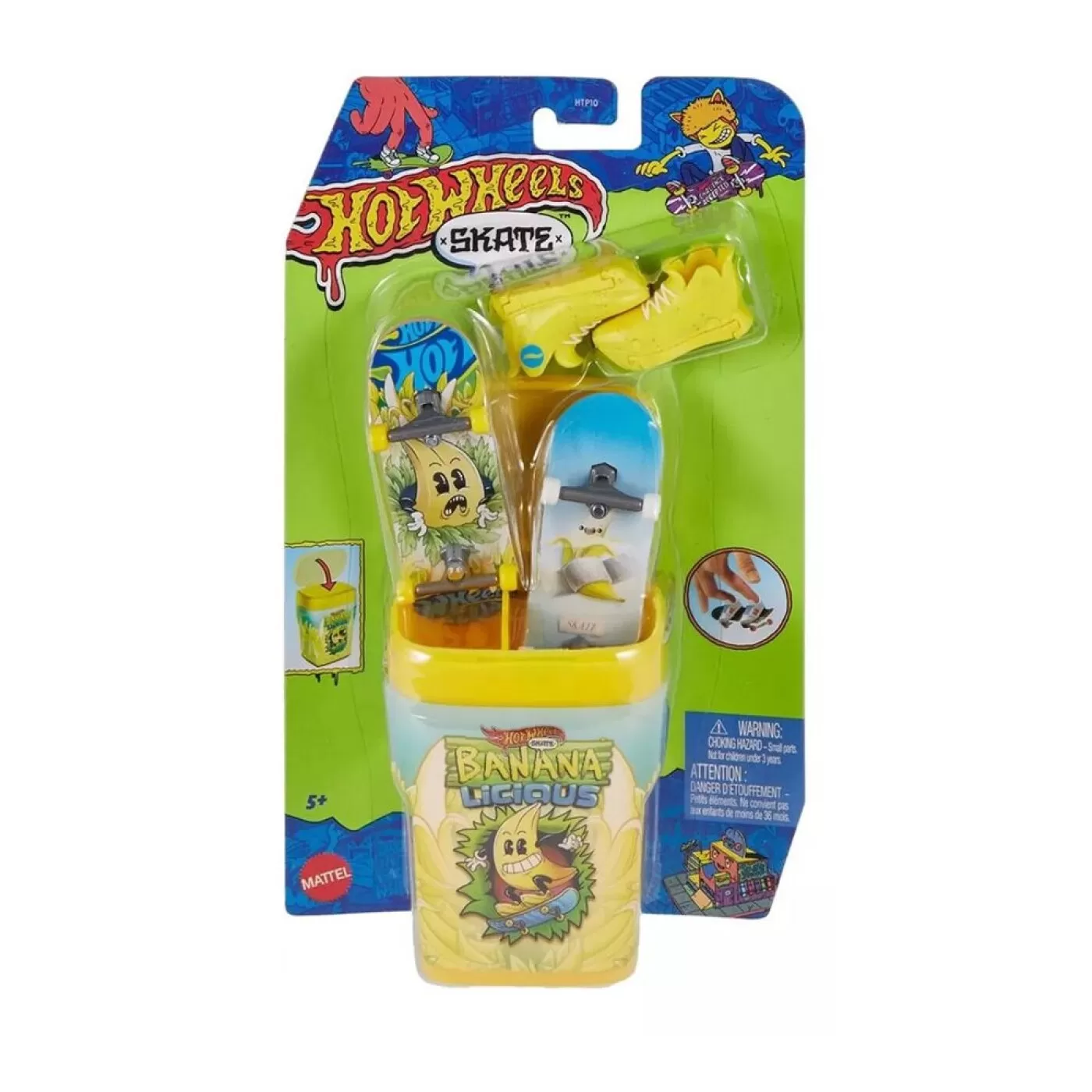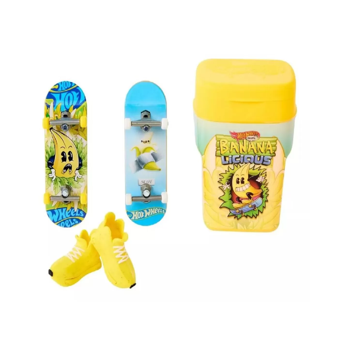 Com esta parceria incrível entre Hot Wheels e Tony Hawk, você poderá fazer manobras insanas em aventuras radicais com os Skates de Dedo de Hot Wheels! Ao abrir um "sabor", como "Bubble Blast" ou "Snakeberry Sour", uma decoração com gráficos doces e que se assemelha a pacotes de chiclete é descoberta. Dentro, há duas pranchas exclusivas e um par de tênis de skate removíveis com gráficos e cores que combinam.