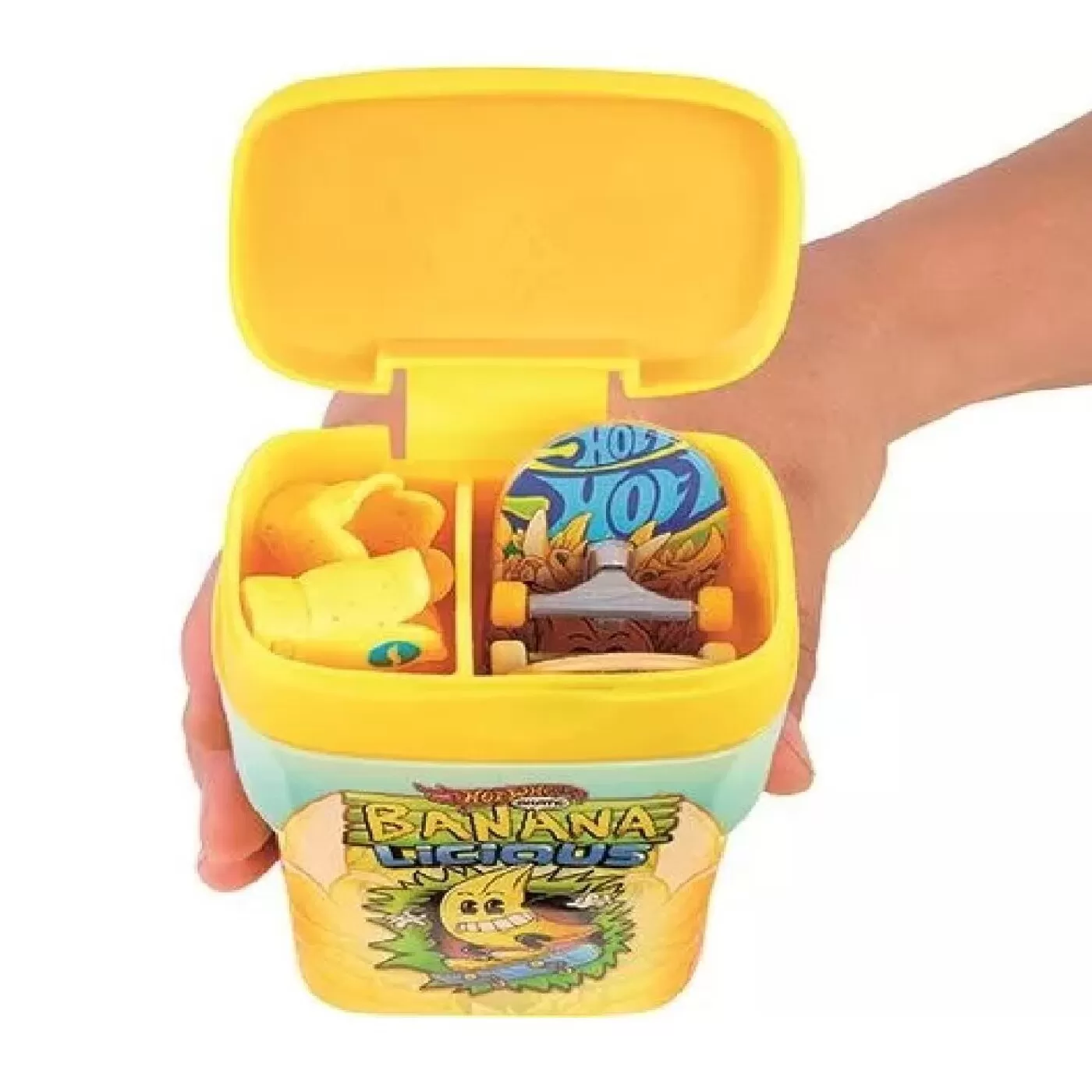 O conjunto Flavor Container Hot Wheels Skate apresenta um novo mundo de acrobacias deliciosas à hora da brincadeira! Os conjuntos têm tema sabores de chicletes, como "Fruit Explosion" e "Fire & Spice". Acompanha 2 Skateboards e 1 par de Tênis.