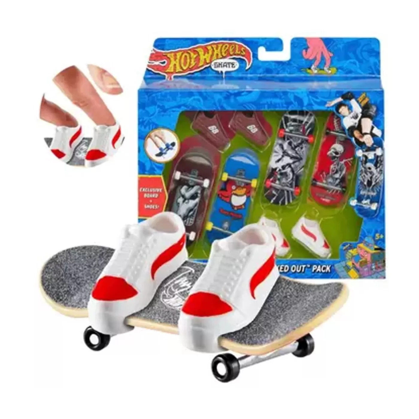 O conjunto inclui quatro pranchas diferentes, de estilo impressionante e totalmente montadas, juntamente com dois pares diferentes de sapatos que podem ser usados de forma intercambiável com todas as pranchas. Os sapatos ajudam as crianças a sentir a prancha e seus movimentos enquanto dominam as acrobacias e saltos. Cada multipack inclui uma prancha exclusiva e um par de tênis de skate.