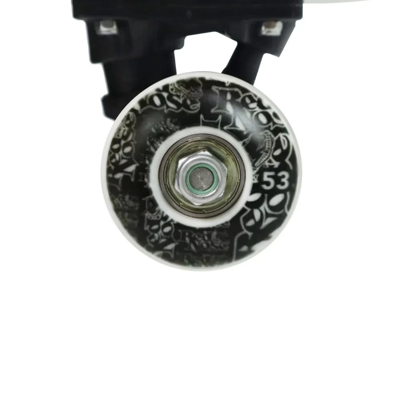 - Rodas em PU (poliuretano), Medidas: 49 mm x 36 mm.