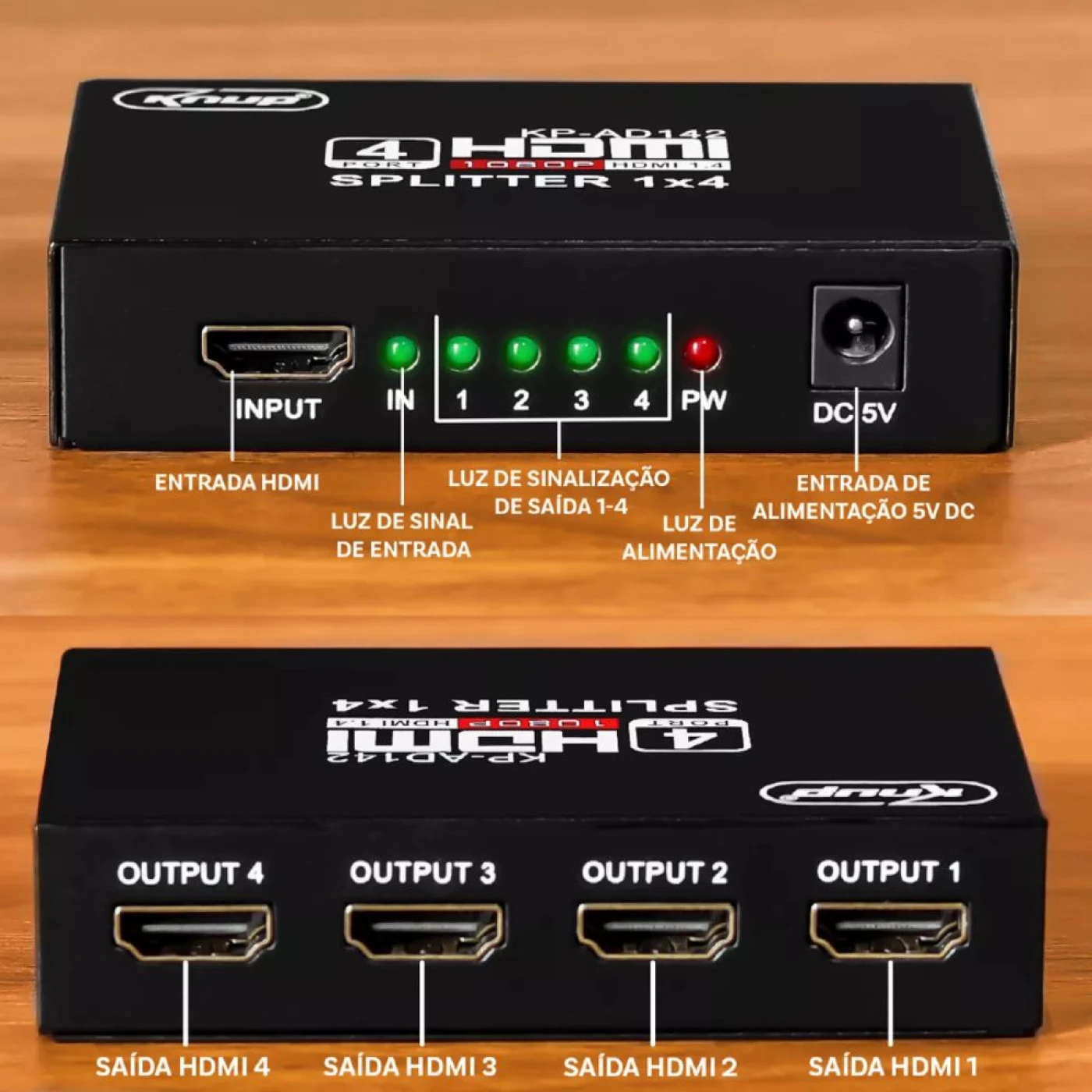 - 1 Entrada Hdmi + 4 Saídas Hdmi.