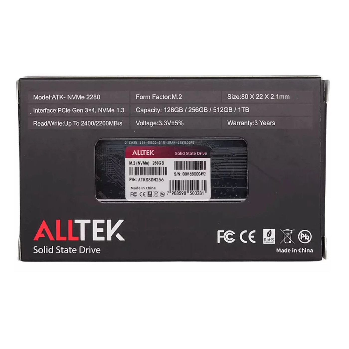 Interface NVMe M.2: O Alltek NVMe utiliza a interface M.2 com protocolo PCIe 3.0, que oferece uma conexão de alta velocidade para transferências de dados rápidas e seguras, superando significativamente os tradicionais SSDs SATA.