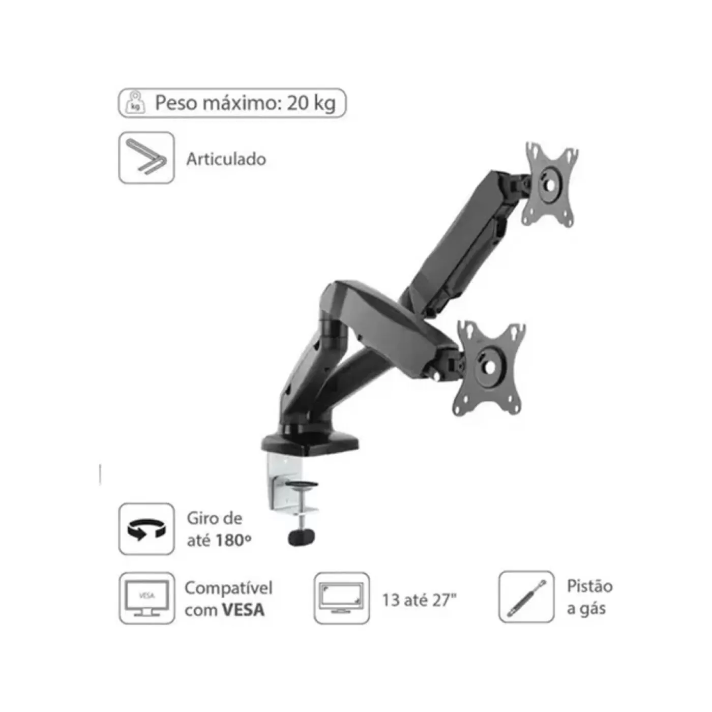 Suporte a gas para 2 monitores 13'' a 27'' vesa 100x100 sm-341b