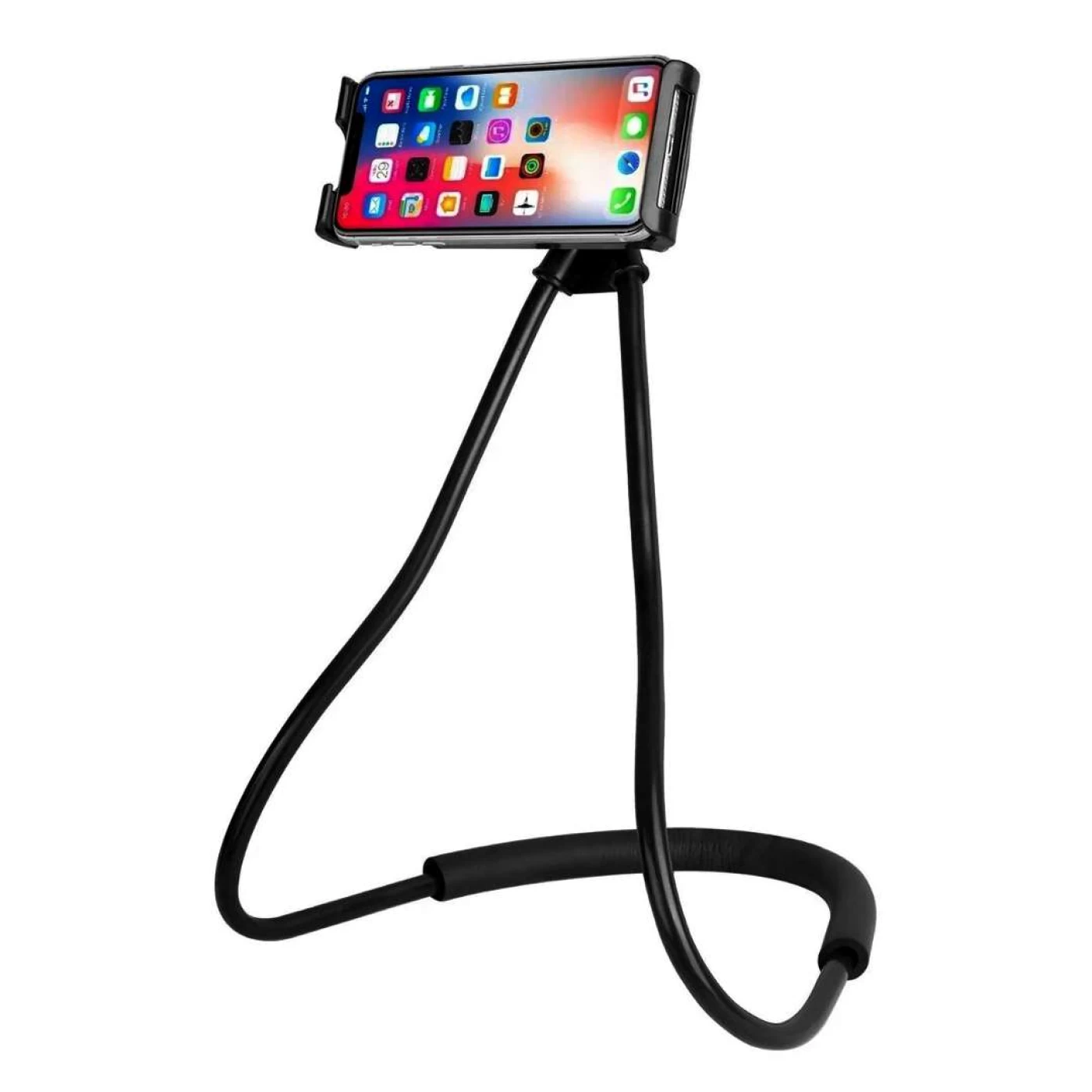 » Este suporte de telefone fica apoiado em seu pescoço para que você obtenha a melhor visão enquanto estiver assistindo ou navegando na internet. Também pode ser apoiado em superfícies ou pendurado.