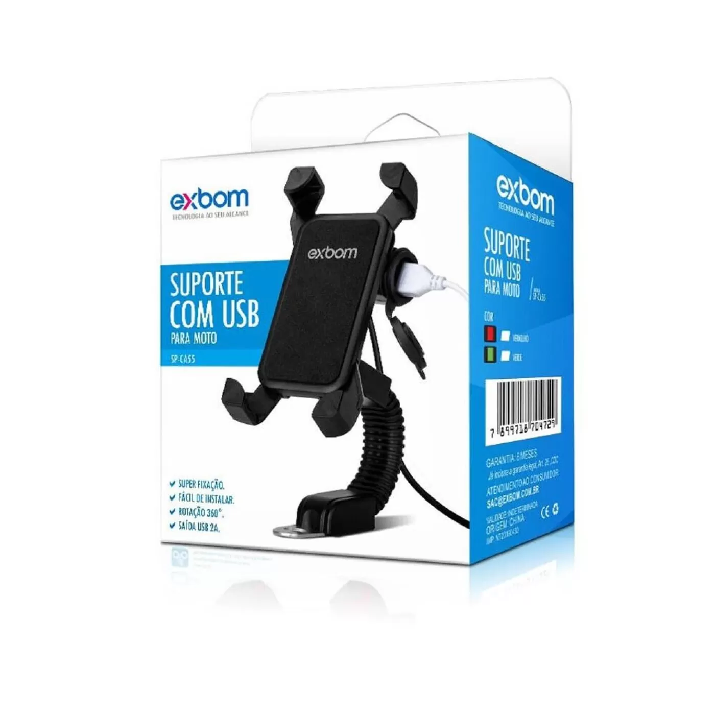 O suporte com saida de USB para carregamento de Smartphones ,muito mais praticidade e não vai falta bateria por momento que você mais precisa
