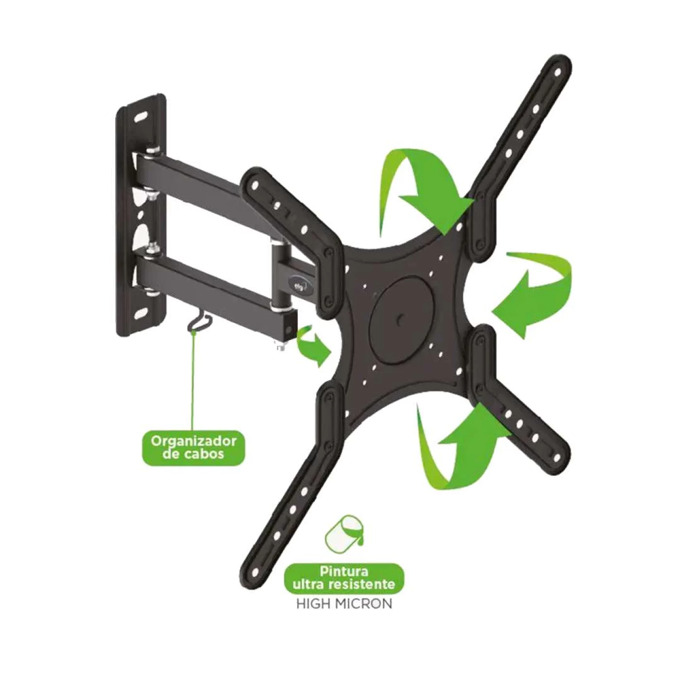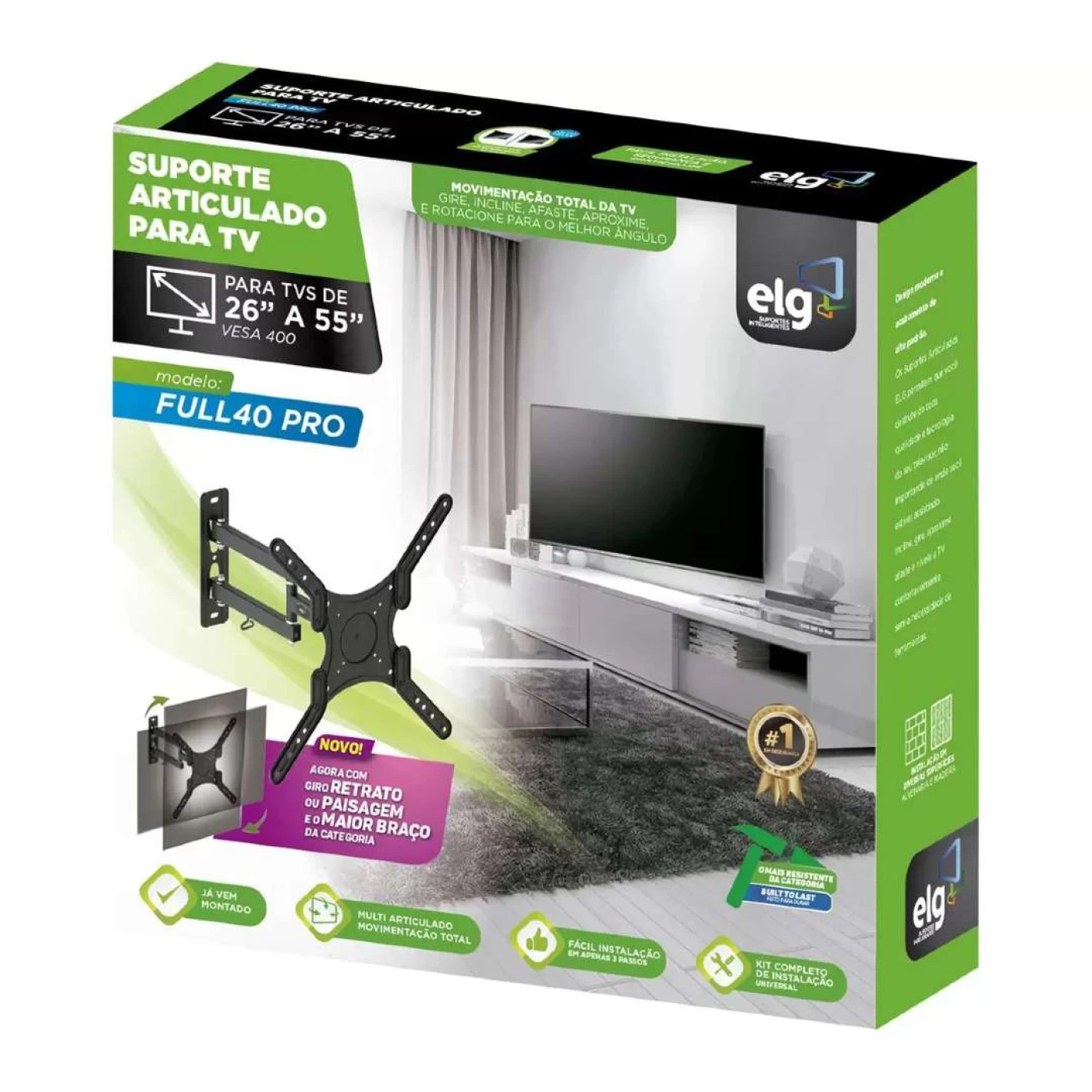 » Suporte Articulado de Parede para TVs LED, LCD, PLASMA, 3D - 26" A 55" VESA400 - FULL40_PRO - PRETO -ELG