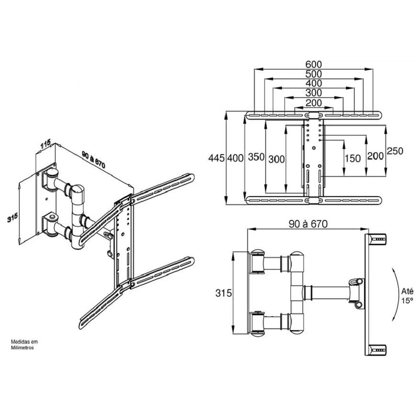 -Suporte Tri-Articulado Com Inclinação De Até 15°