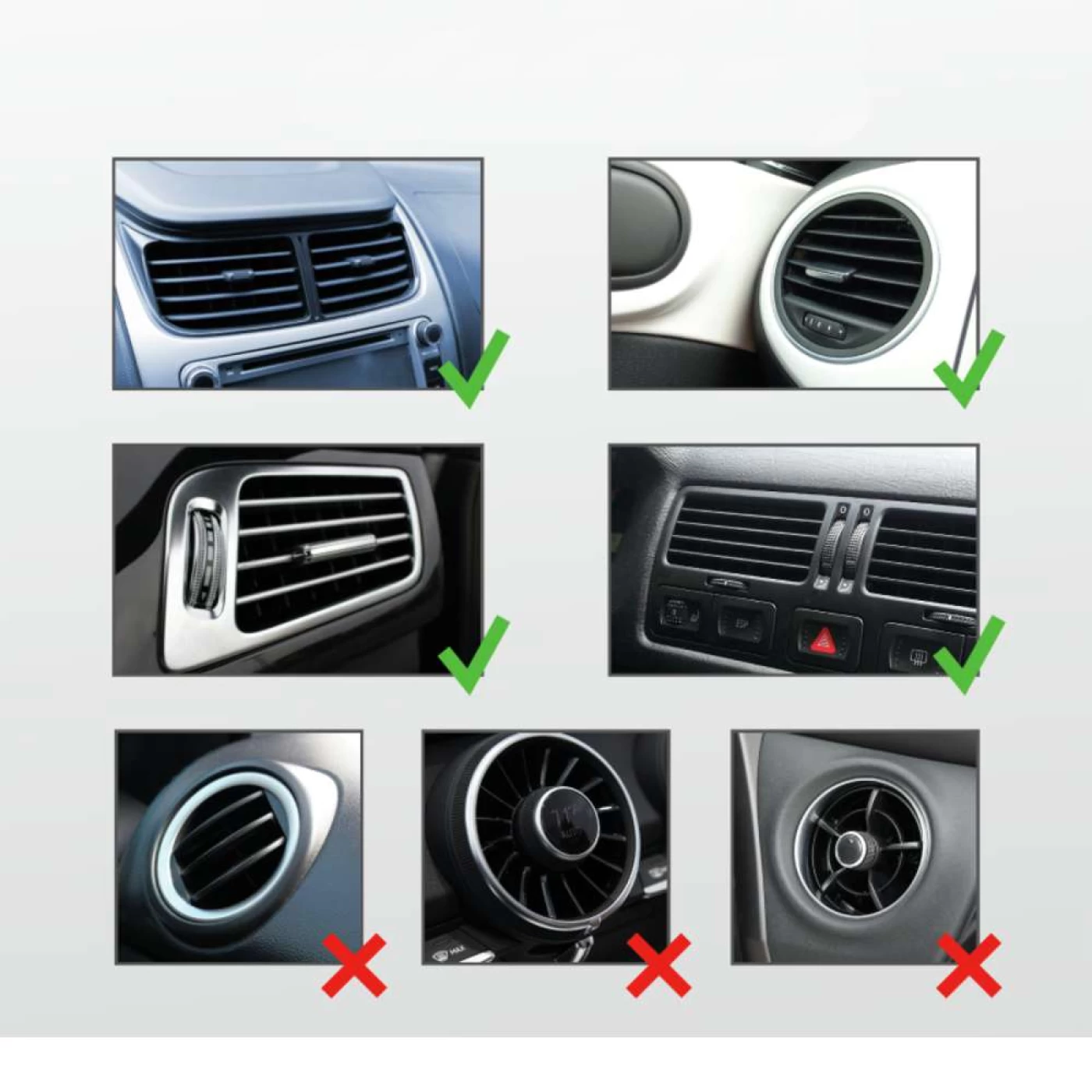 - Robusto design rotativo em borracha que se encaixa nas grelhas de ventilação mais comuns de qualquer carro